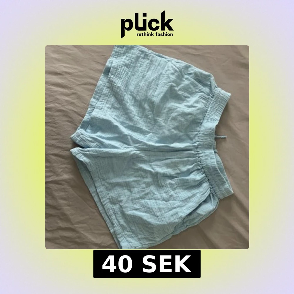 Säljer ett par ljusblå shorts med loose passform och bred resår i midjan med snörning. Materialet är mjukt och luftigt, perfekt för varma dagar. De har en enkel design utan mönster och passar dig som gillar chill och bekvämt.
