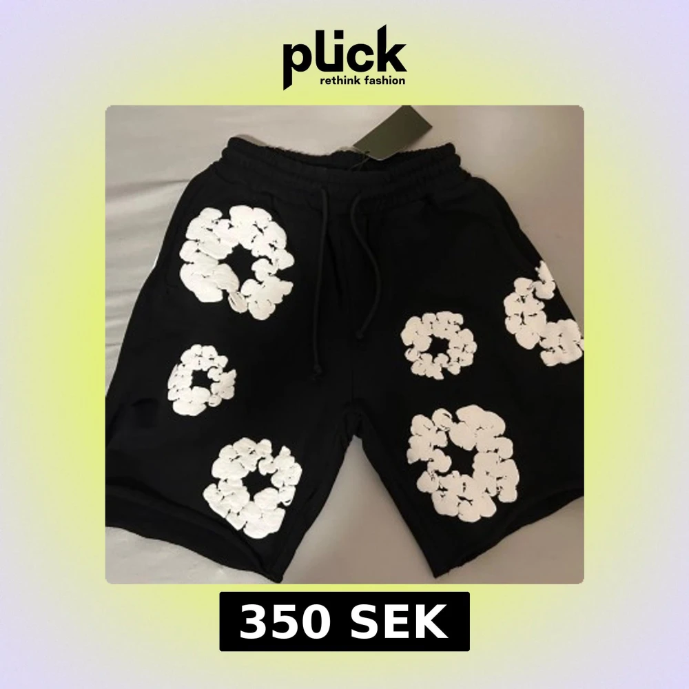 Svarta shorts från Market Tease med stora vita blommor tryckta över hela plagget. De har elastisk midja med snörning och en loose passform som ger en chill vibe. Perfekta för sommarens häng och har en unik, trendig look.