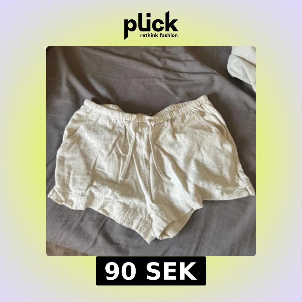 Snygga och luftiga beiga shorts i linne med elastisk midja och snörning framtill. Perfekta för varma dagar och har praktiska fickor på sidorna. Avslappnad passform och mjukt material som känns skönt mot huden.