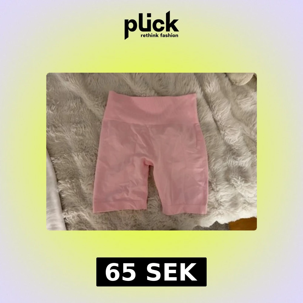 Säljer ett par ljusrosa tränings shorts med hög midja och ribbade detaljer i midjan och benslut. Shortsen har scrunch-effekt bak för en snygg passform och är perfekta för träning eller chill. Mjukt och stretchigt material. Köpt i en butik i malllorca.