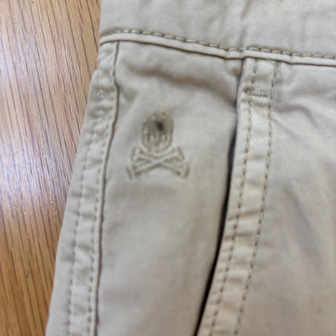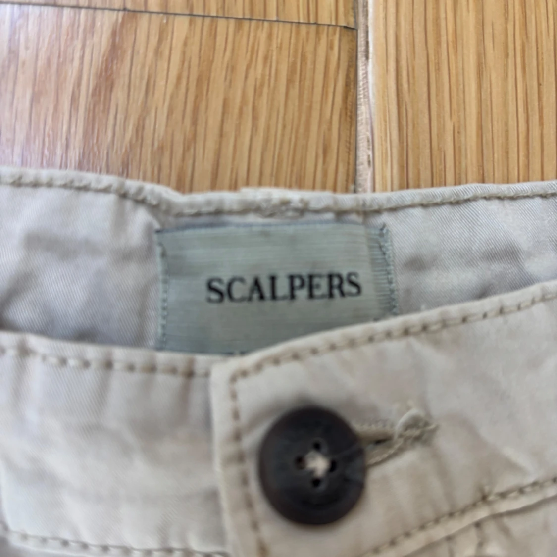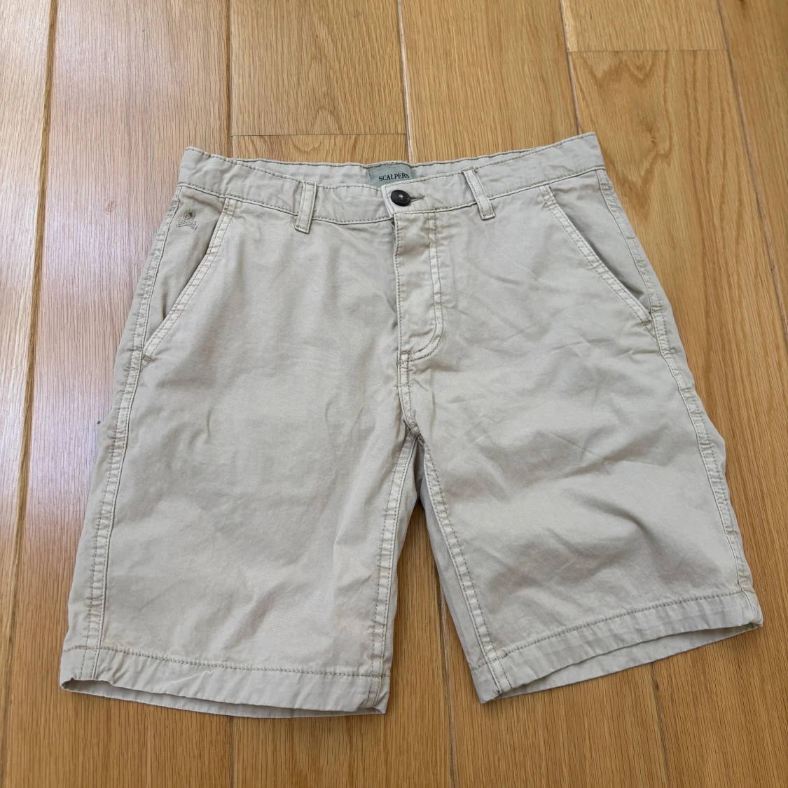 Snygga beiga shorts från Scalpers med klassisk passform och broderad döskalle-logga vid fickan. Shortsen har knapp och dragkedja i gylfen samt två sidofickor. Perfekta för varma dagar.