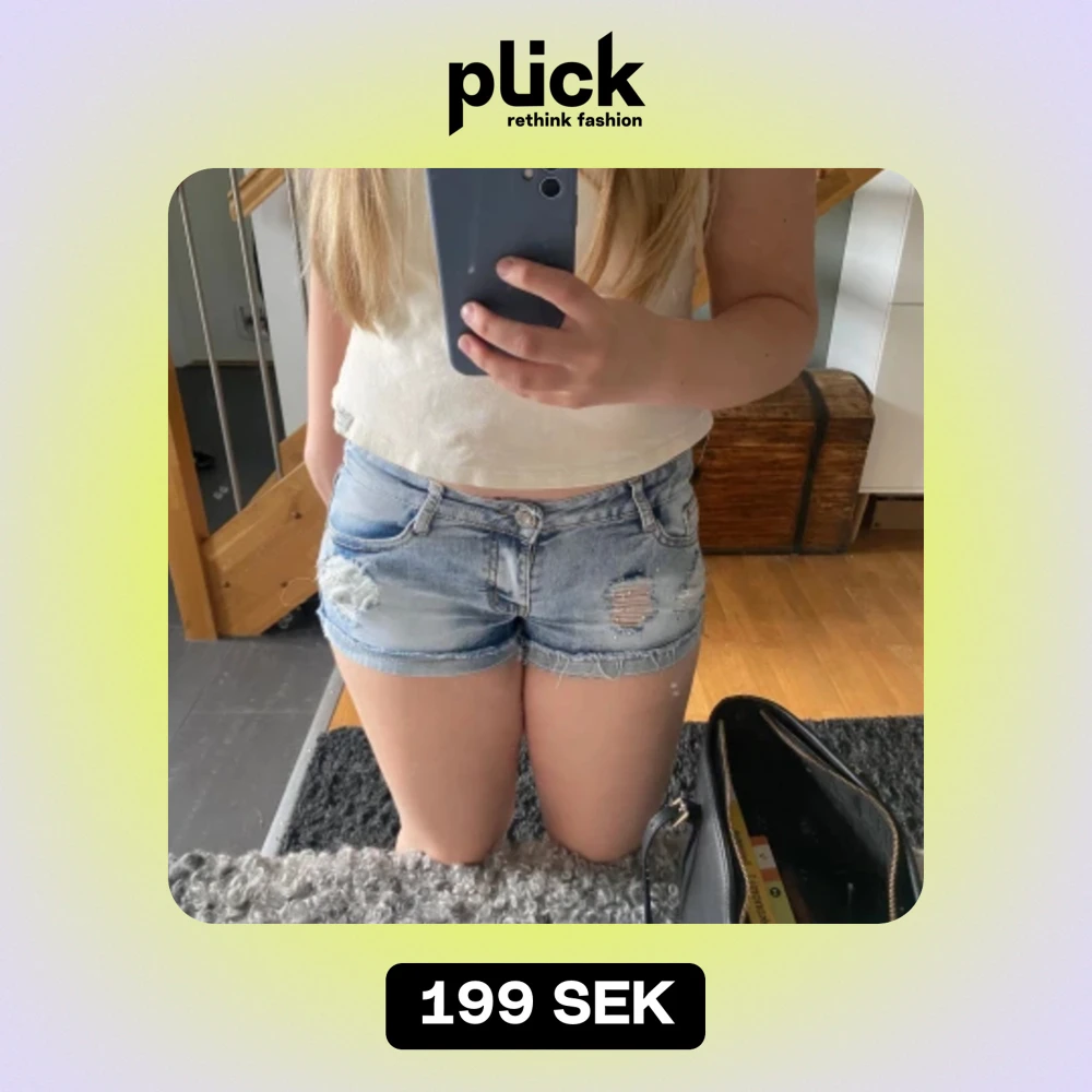 Säljer dessa Lågmidjade jeansshortsen som jag köpte second hand. Har knappt använt dem på grund av att jag upplever dem för korta för mig. Storleken säger M, men jag skulle nog säga att det även passar S.