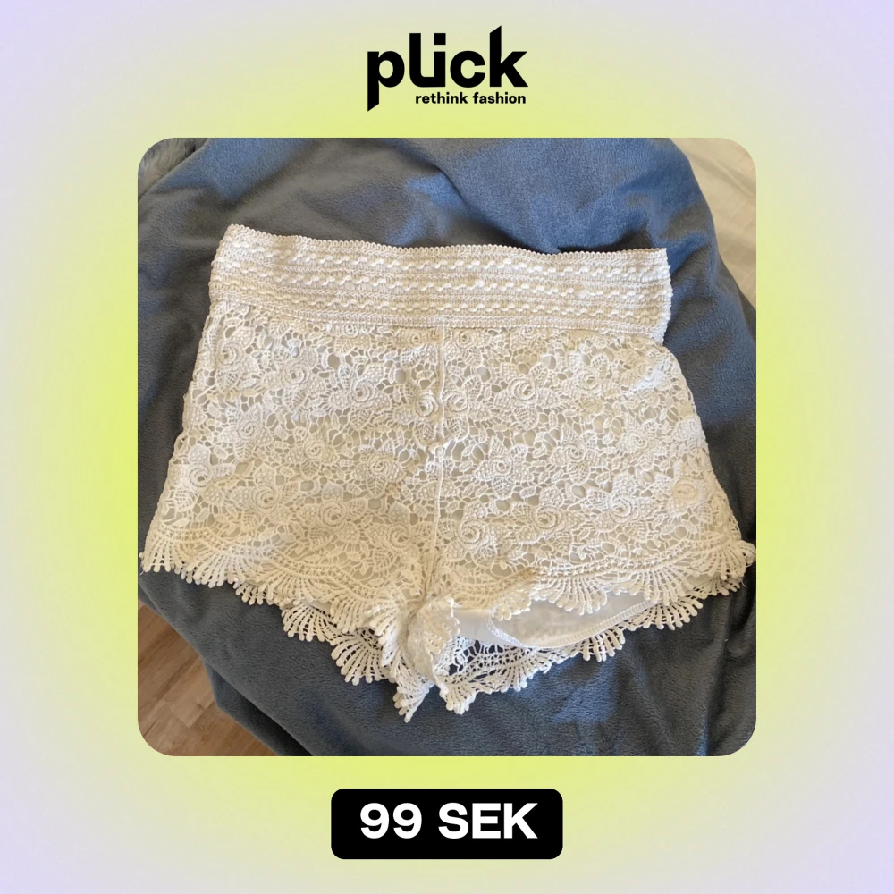 Säljer ett par superfina vita spets shorts i mycket bra skick. De är högmidjade och har ett vackert blommigt mönster med volangdetaljer längst ner. Perfekta för sommarens alla fester eller en dag på stranden. Passar både till vardags och fest! 🌸