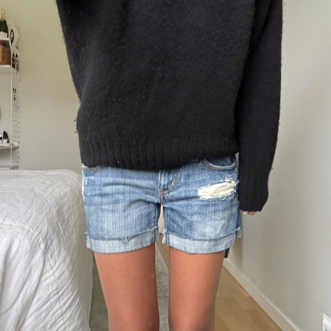 Blå jeansshorts med slitningar