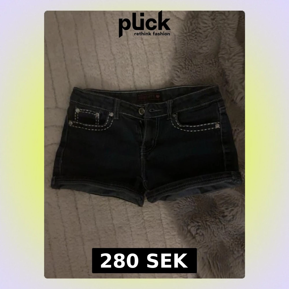 säljer ett par vintage jeansshorts, finns ingen storlekslapp. Sitter lite tajt över låren på mig som vanligstvis har S.💞
