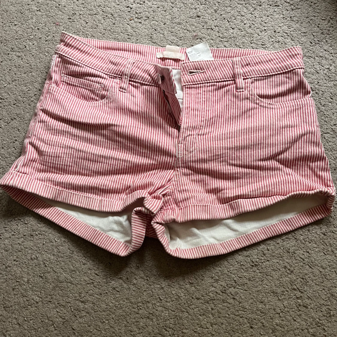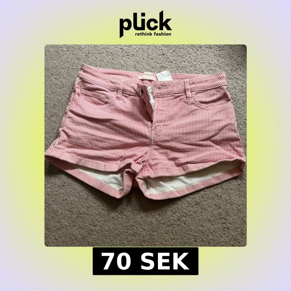 Snygga shorts med smala rosa och vita ränder, klassisk femficksmodell och bälteshällor. De är tillverkade i mjuk bomull och har en avslappnad passform med uppvikta benslut. Perfekta för varma dagar och en chill look.