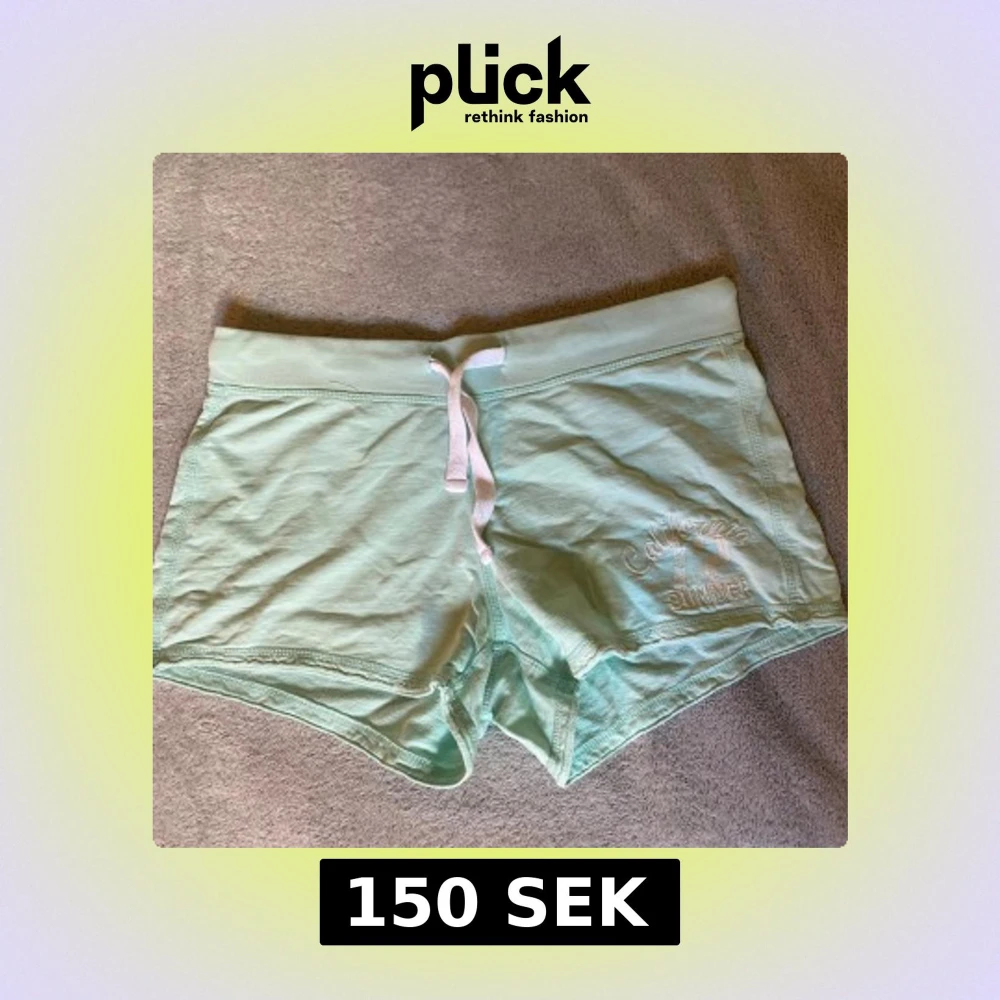 Snygga mintgröna shorts med vit snörning i midjan. Mjukt bomullsmaterial och avslappnad passform, perfekta för varma dagar eller chill hemma.