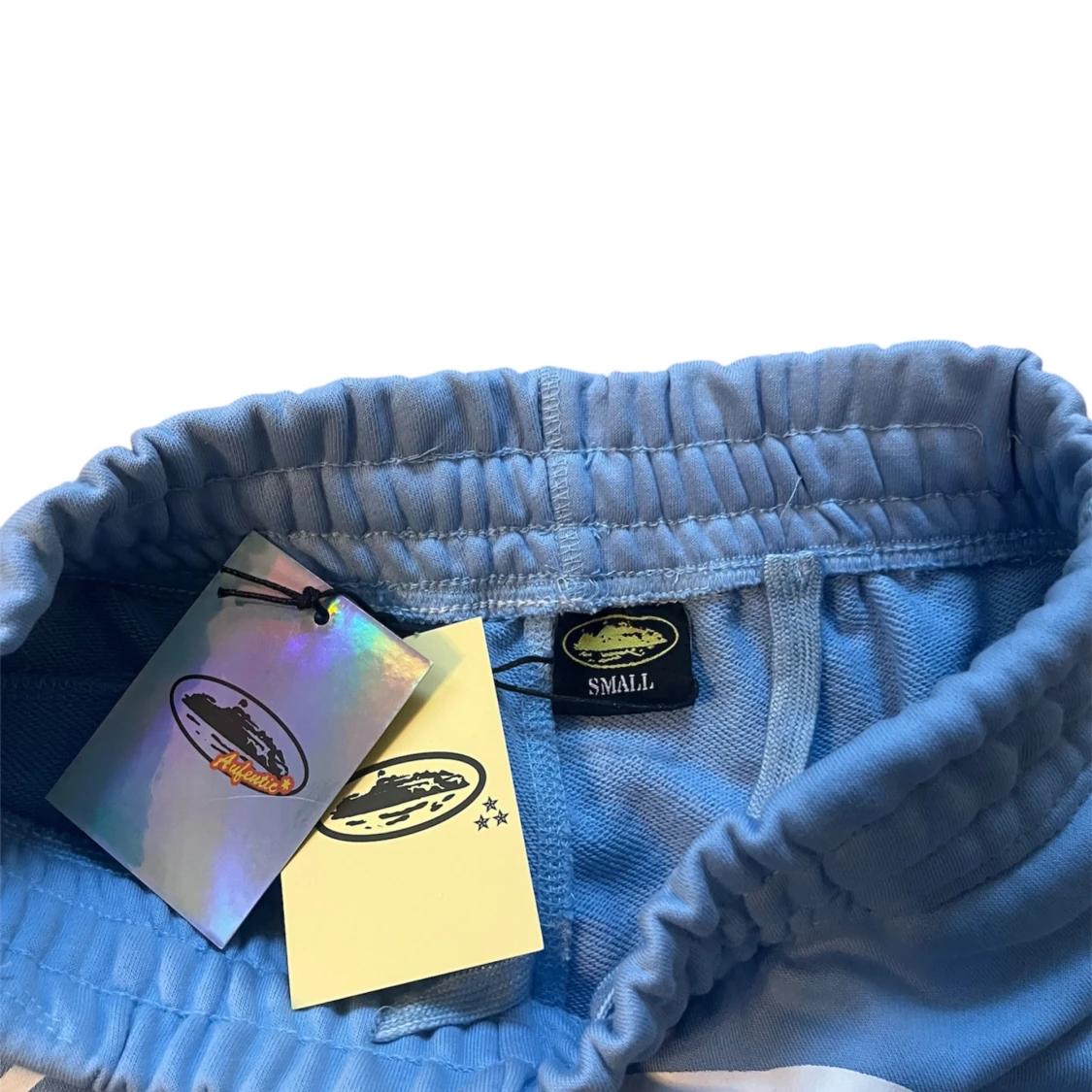 Snygga ljusblå shorts från Corteiz med elastisk midja och tryck framtill. Relaxed passform, sidofickor och en bakficka. Tillverkade i mjuk bomull som är skön mot huden, perfekta för streetwear och chill dagar. 👉 Endast använda en gång, i nyskick. Tyvärr för små, fick dem i present.
