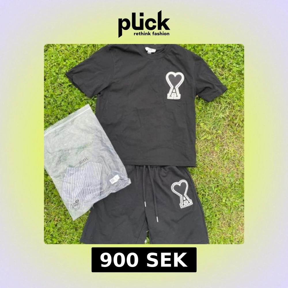 Svarta shorts från AMI med en stor broderad hjärtlogga på ena benet och snörning i midjan. Tillsammans med en svart AMI t-shirt. Perfekta för sommaren och har en bra passform. Går även att köpa separat, Kolla in profilen!🤩