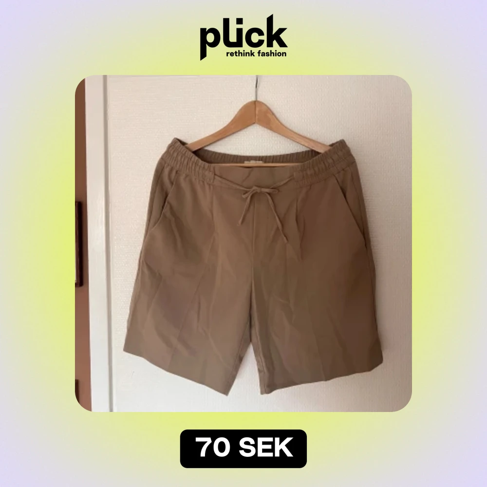 Oanvända beiga shorts i Stl L. Går till mitten av låret, snörning i midjan så går att justera till mindre storlek 💓