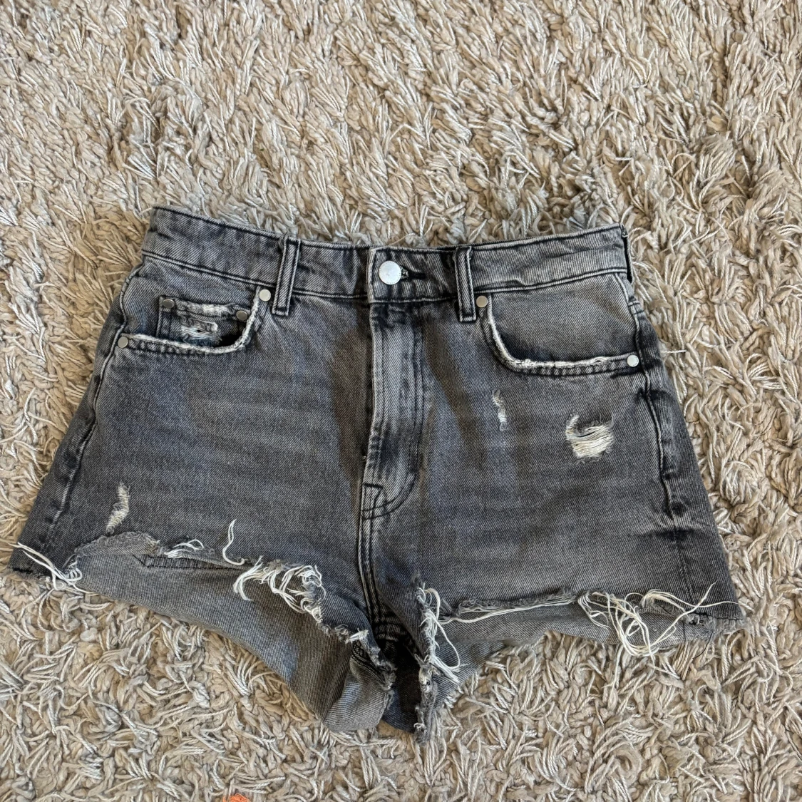 Gråaa jeans short som är högmidjade