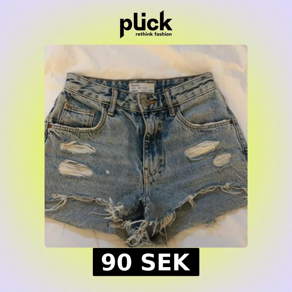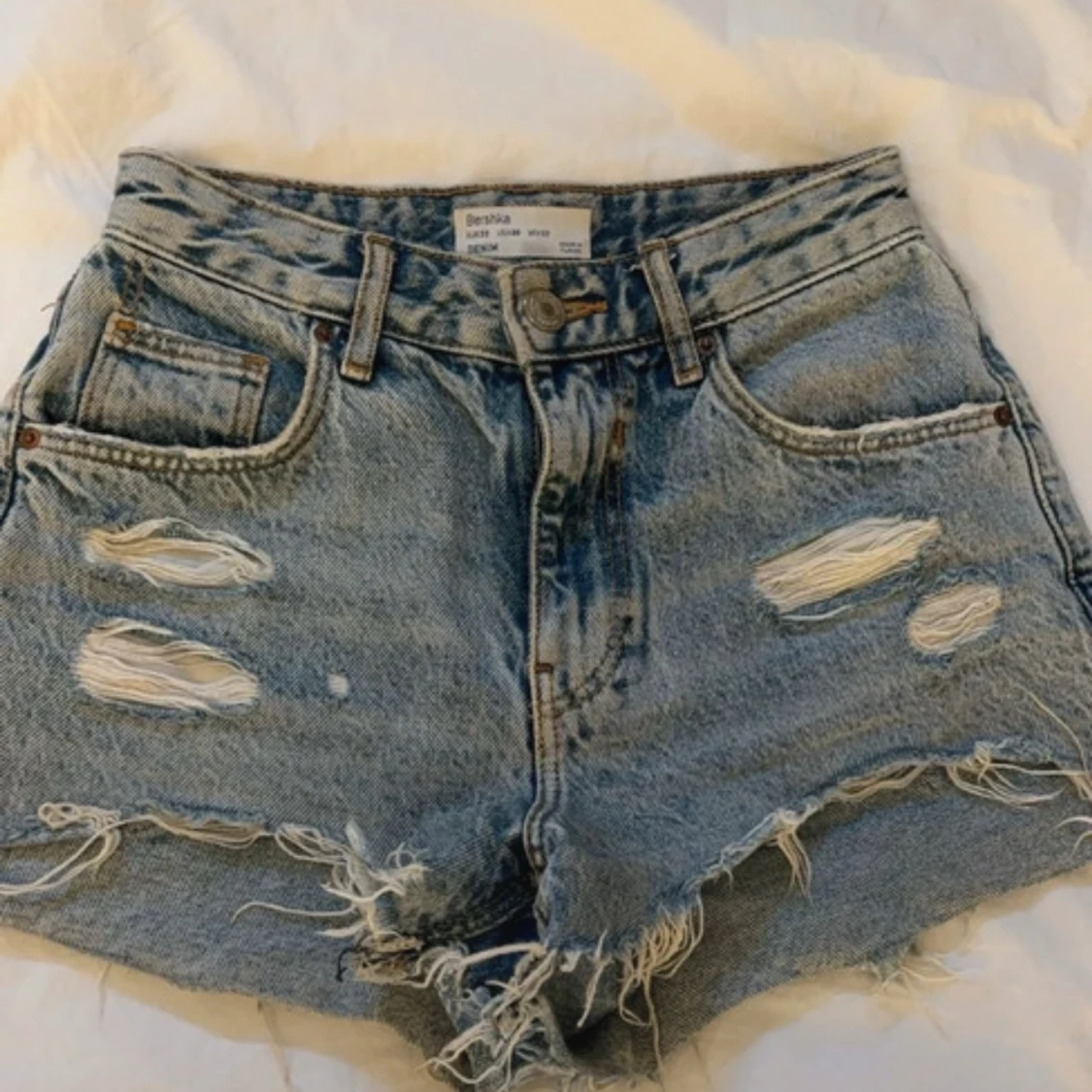 Snygga blå jeansshorts från Bershka med slitna detaljer. Mycket bra skick