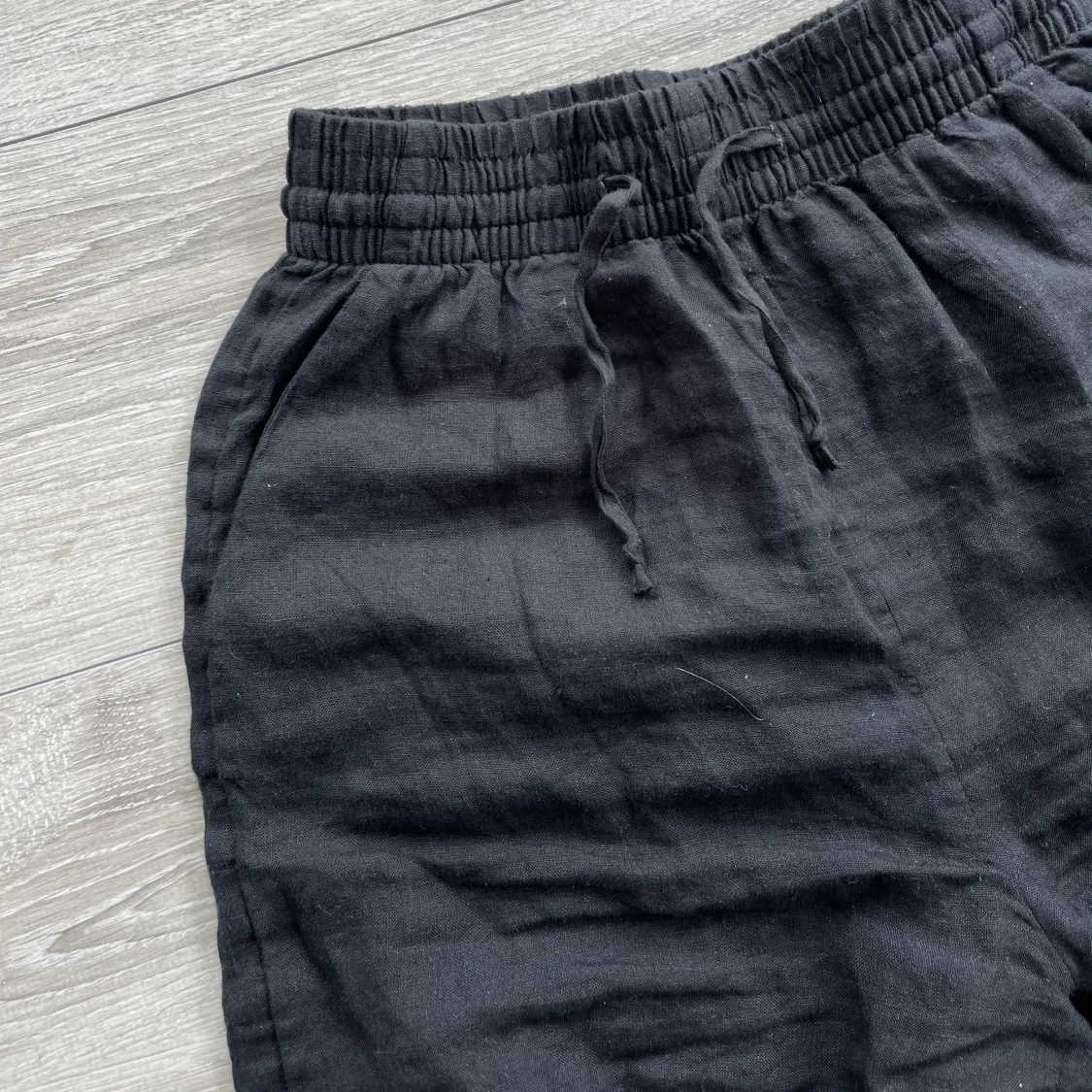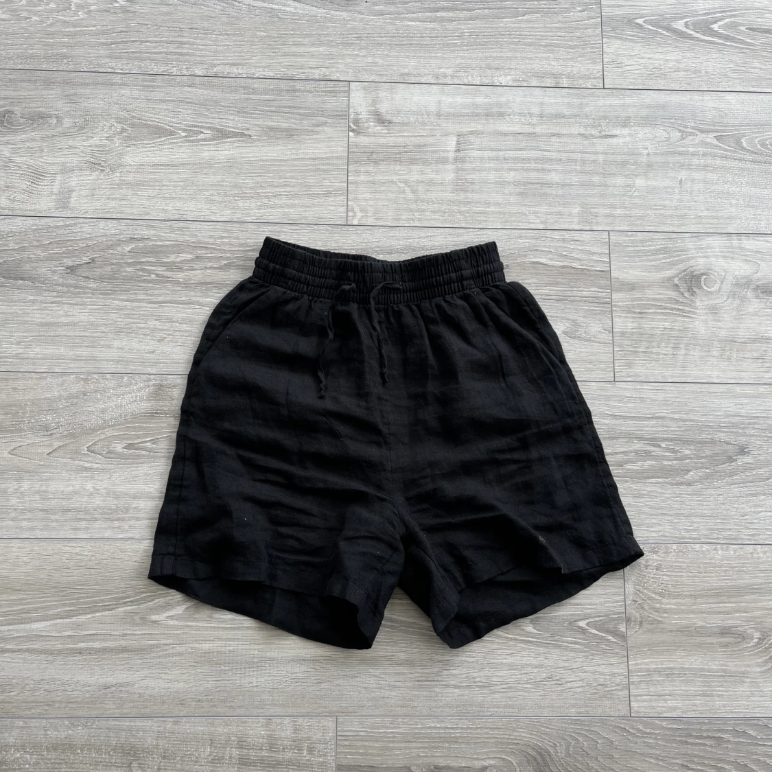 Ett par svarta linneshorts ifrĂ„n Gina tricotđ skriv till mig vid intresseđ