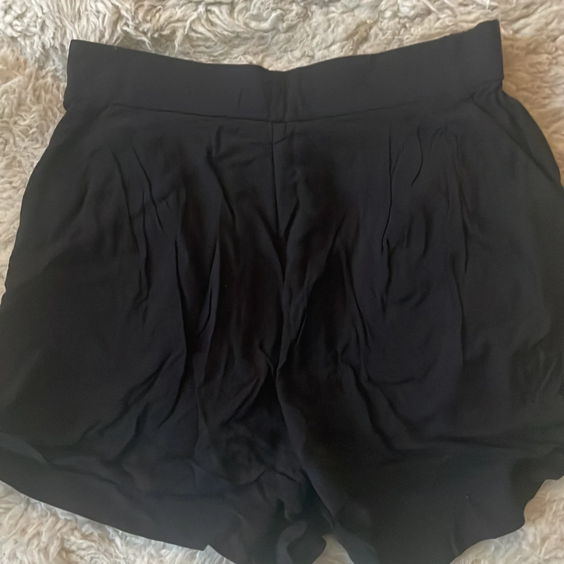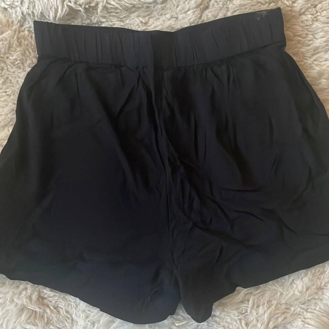 Säljer ett par svarta shorts från H&M i storlek 42. De är gjorda i ett mjukt och bekvämt material, perfekt för sommardagar. Shortsen har en elastisk midja för en skön passform. Perfekta för både vardag och avslappnade tillfällen.
