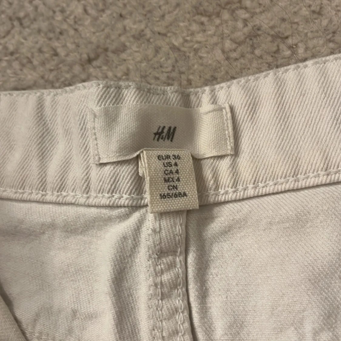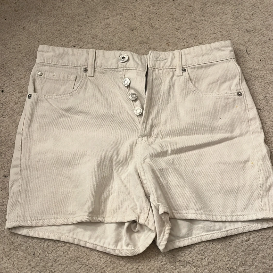Snygga beige shorts från H&M med knappgylf och femficksdesign. Perfekta för en avslappnad stil under varma dagar. De är tillverkade i ett bekvämt material som ger en skön passform.