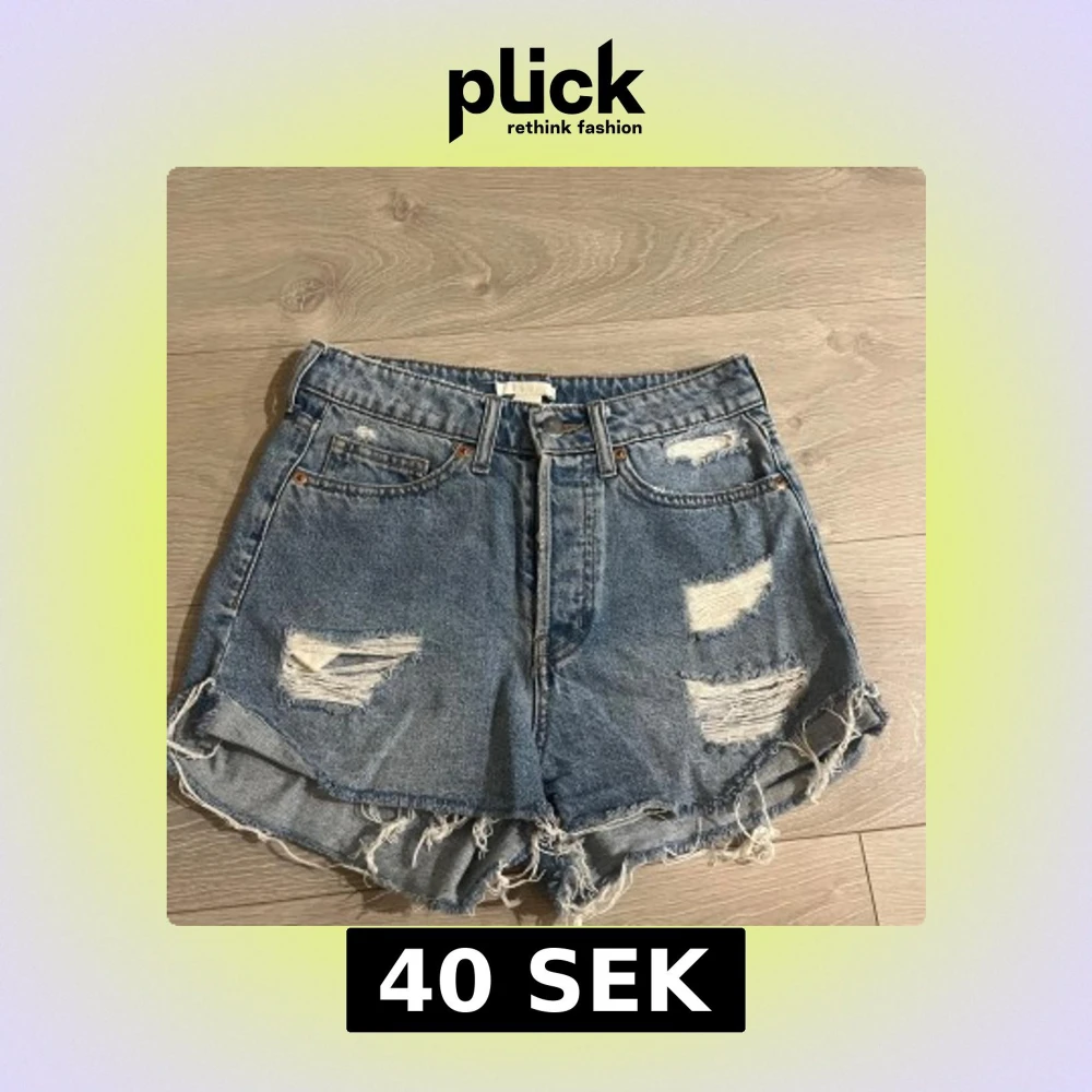 Snygga blå jeansshort med slitningar. Knappgylf. Perfekta för varma sommardagar ☀️ Använda fåtal gånger, jättefint skick. Rökfritt hem! Skriv meddelande vid frågor/fler bilder 🩷