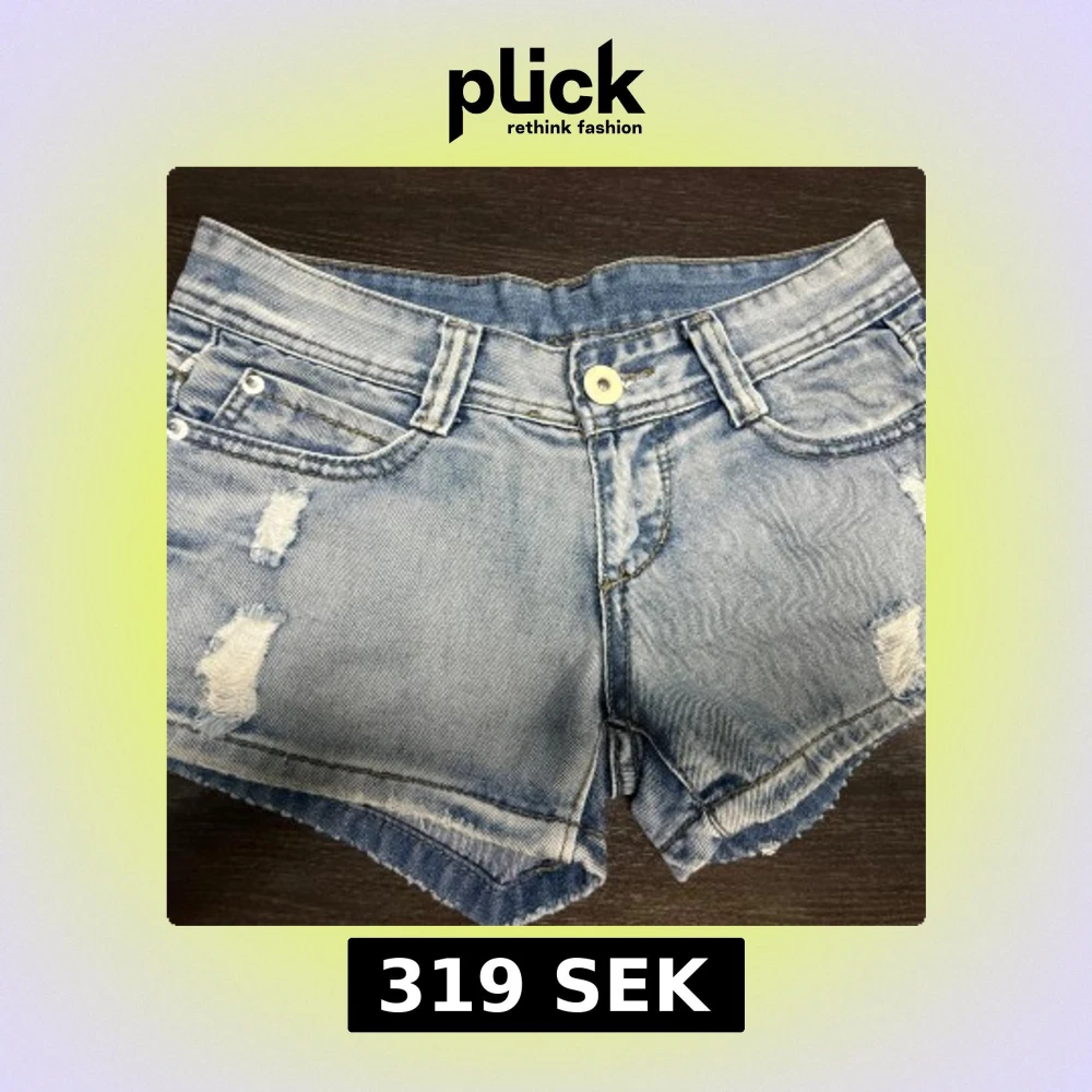 Snygga ljusblå jeansshorts med slitna detaljer, jättefina nu till sommaren. Midjemåttet rakt över är 34 cm. Obs! Jag är på semester och kan därmed skicka tidigast 28/6💓