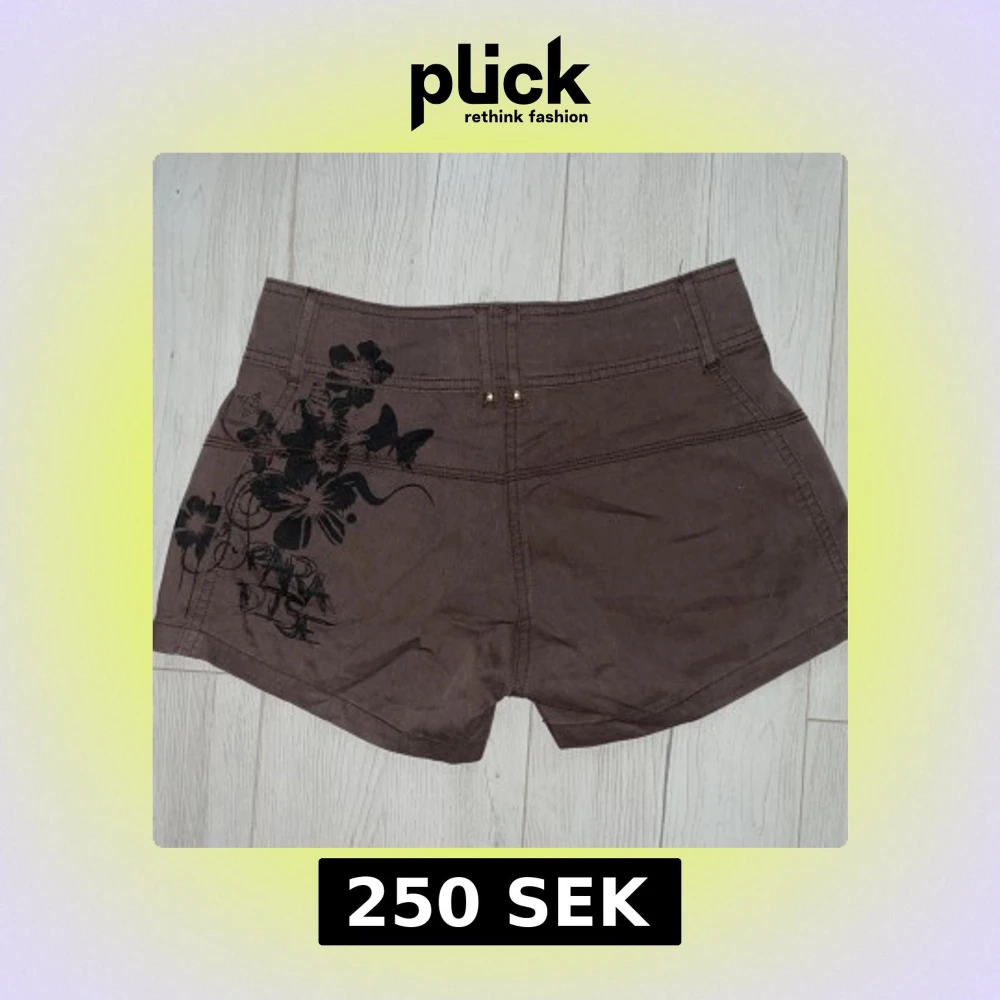 jätte fina lågmidjade sjorts köpta i spanien. midjan är 72cm och längden är 27cm. Skulle gissa att det är storlek S men är inte säker