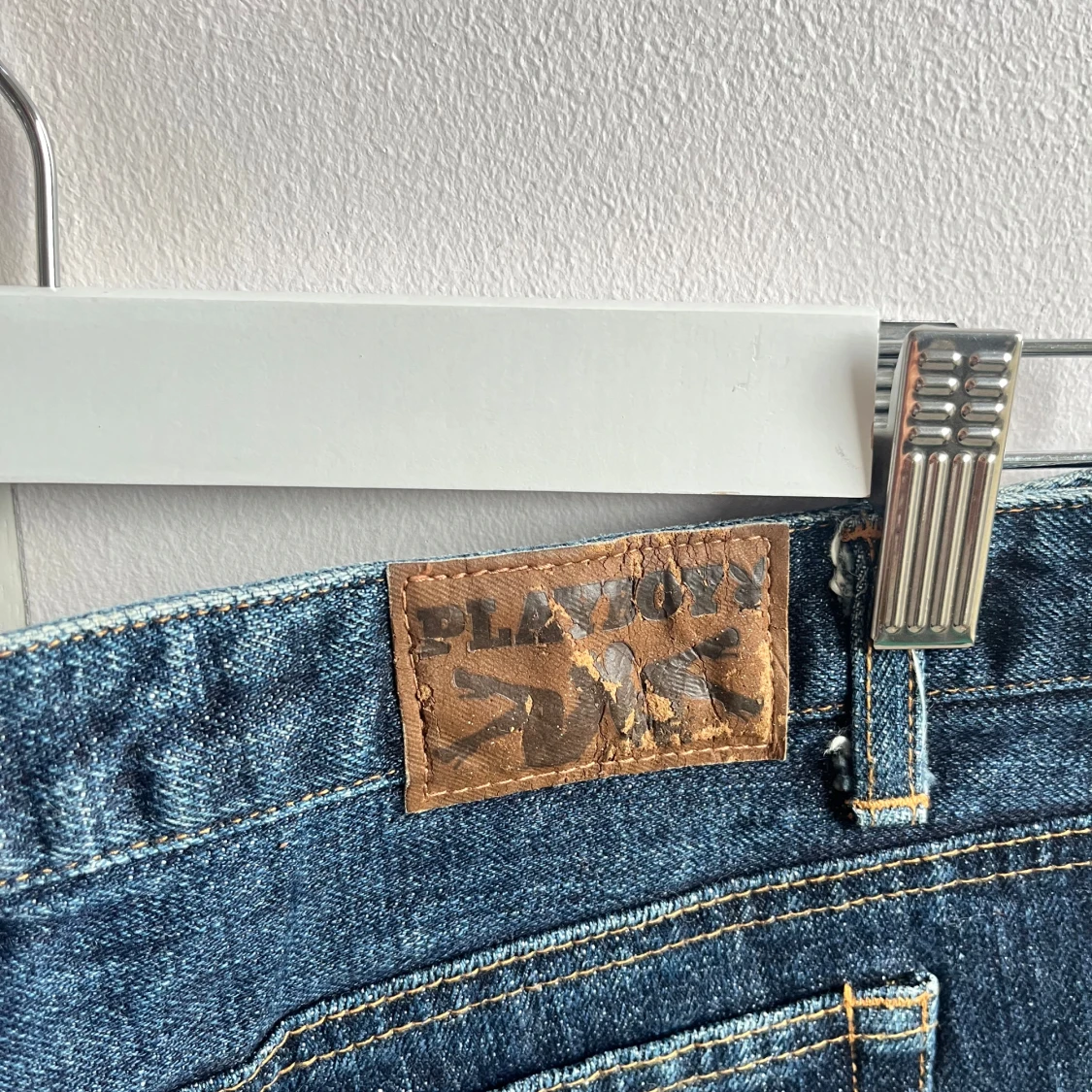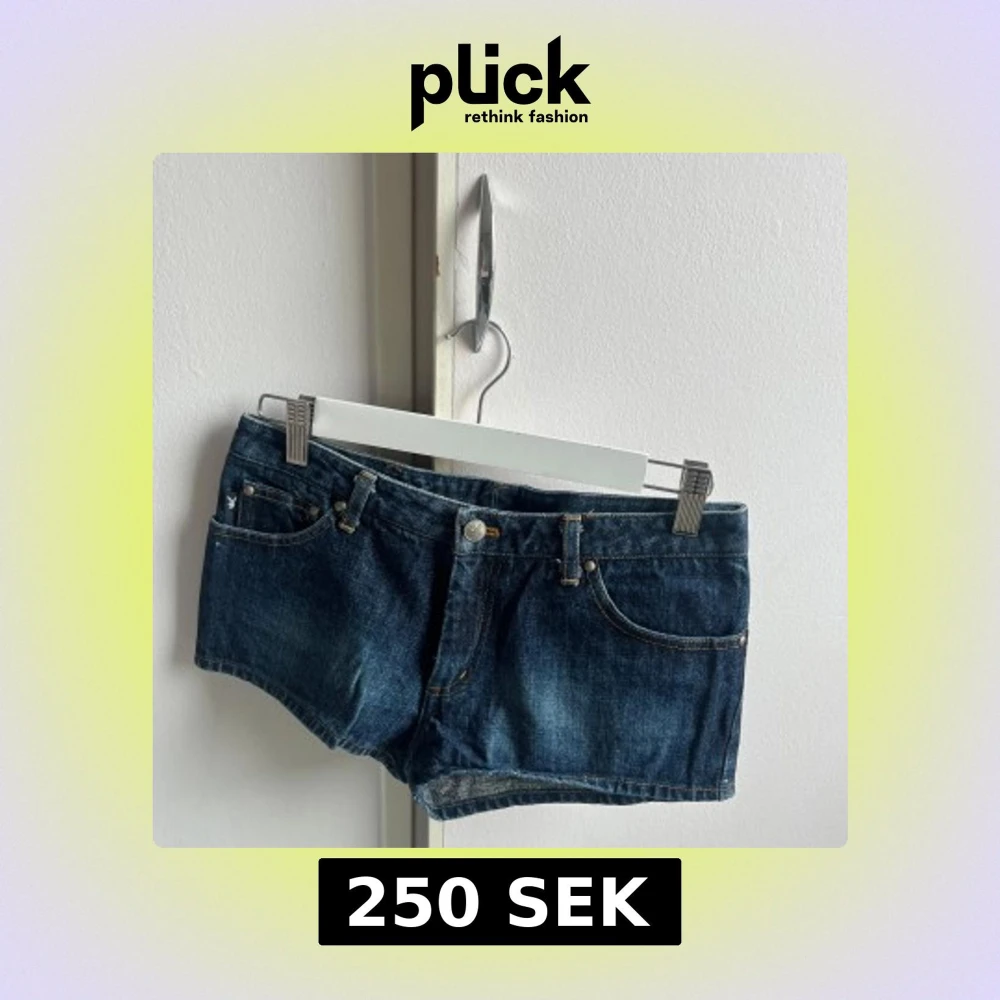 Säljer ett par mörkblå jeansshorts från Playboy med låg midja. Storlek xs/s. Priset går att diskutera.