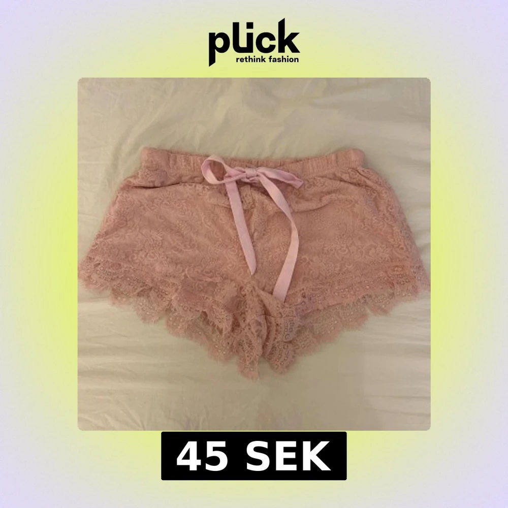 Supersöta ljusrosa shorts i spets från Isabella med dekorativ rosett framtill i strl M. Shortsens kanter har fina volanger och spetsdetaljer som ger en romantisk känsla. Perfekta för varma dagar eller som mysplagg hemma.