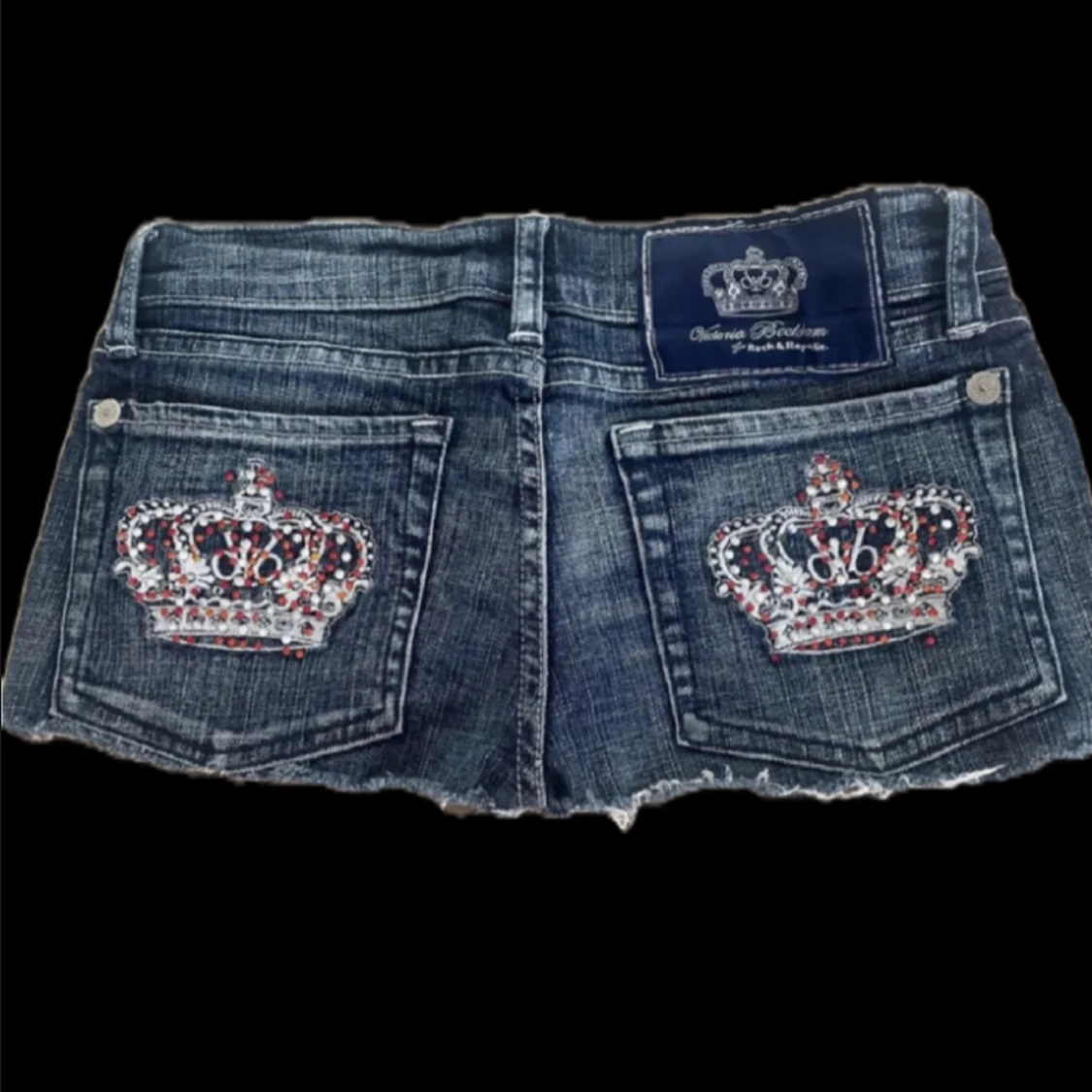 Victoria Beckham jeansshorts med röda och vita rhinestones