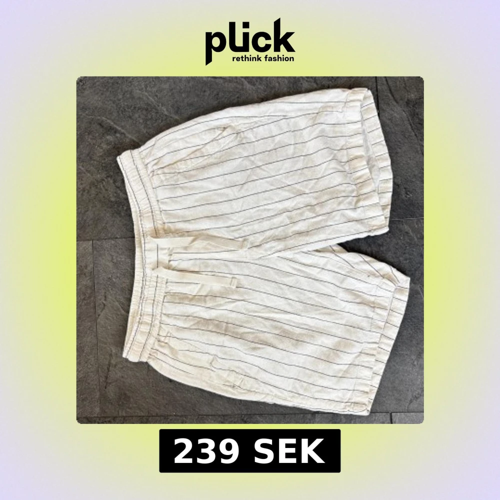 Snygga vita shorts med tunna svarta ränder och elastisk midja med snörning. Shortsen har sidofickor och är tillverkade i ett lätt och luftigt tyg, perfekt för varma dagar.