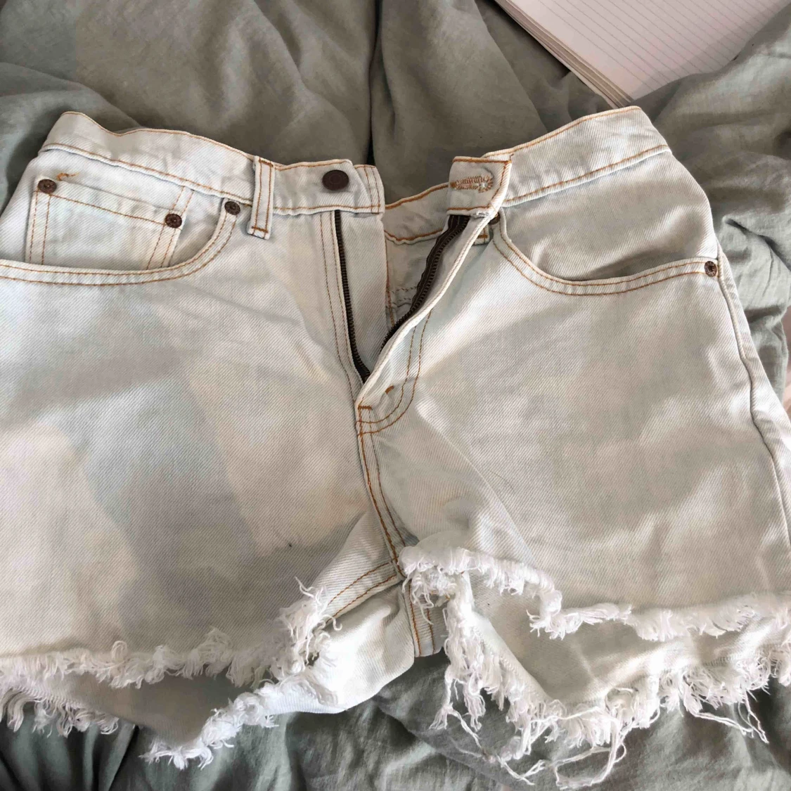 Levis shorts, inköpa på urban outfitters för cirka 550 kronor. Säljes då de är för stora i midjan på mig, jag är en storlek 34 vanligtvis. Motsvarar en storlek M ungefär!