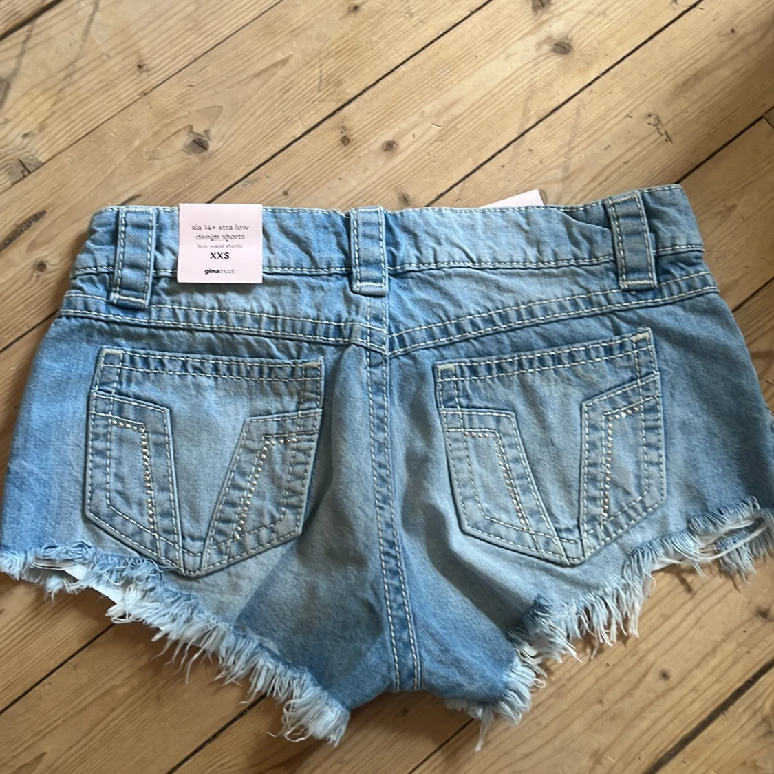 Snygga ljusblå jeansshorts från Gina Tricot med låg midja, slitna detaljer och fransig underkant. Ifrån Gina tricots nya 14+ kollektion och är helt slutsålda på hemsida 😊har kvar prislapp