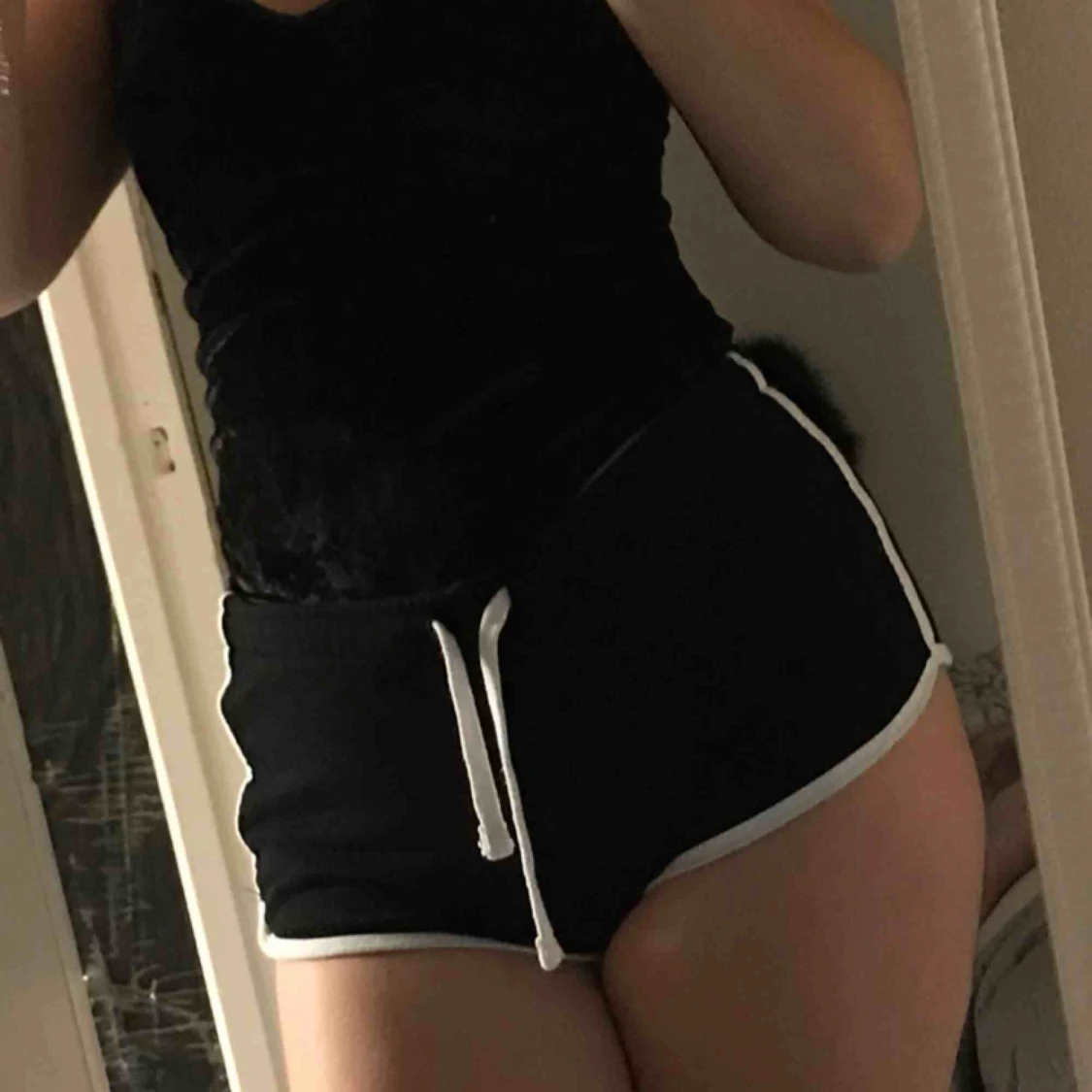 svarta,vita Mjukis shorts, väldigt sköna ha på sig, frakt tillkommer om man ej kan komma till Norrköping o hämta dom direkt, vi kan diskutera priset, skriv om ni undrar något, lappen på insidan av shortsen är lite trasig som man ser på sista bilden