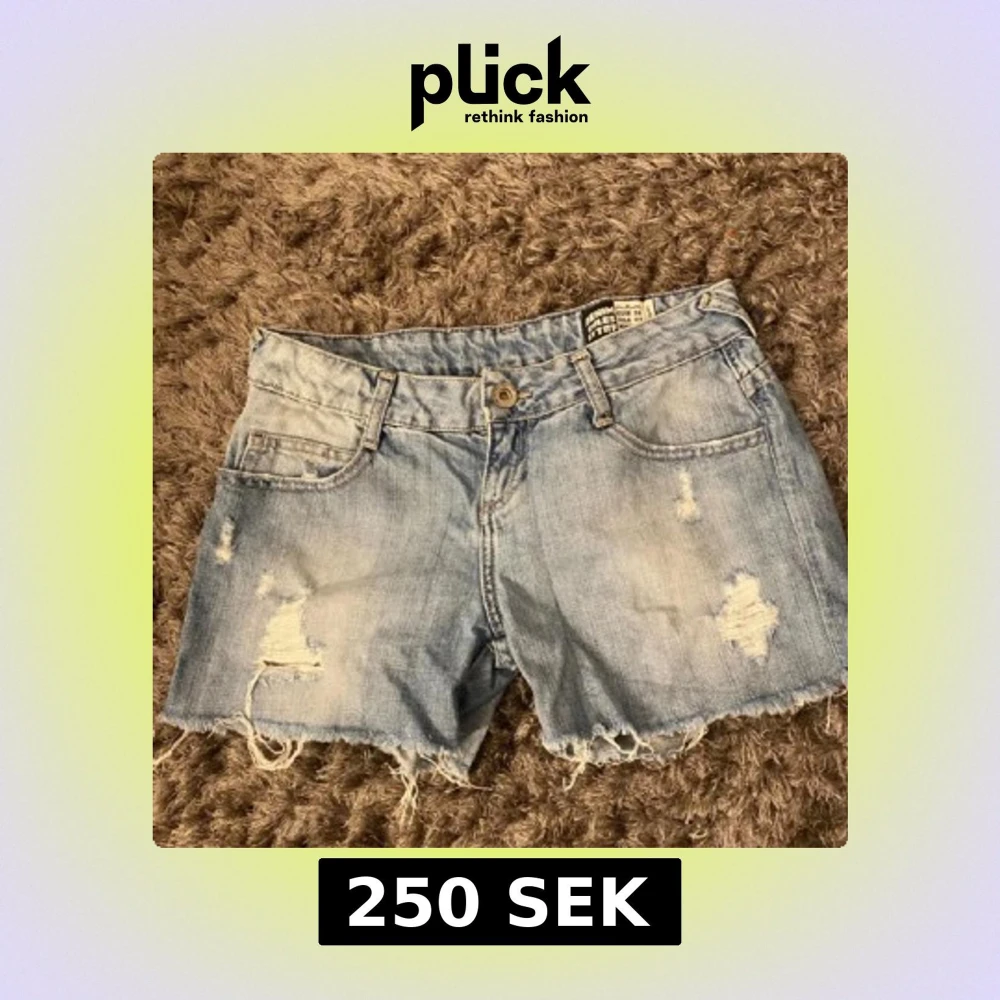 Dom perfekta low waist jeansshortsen i storlek 36 som inte är för korta och har skit snygga detaljer 💕 Dom är för små och sitter för tajt på mig tyvärr. Har slitningar som är design men inga defekter.
