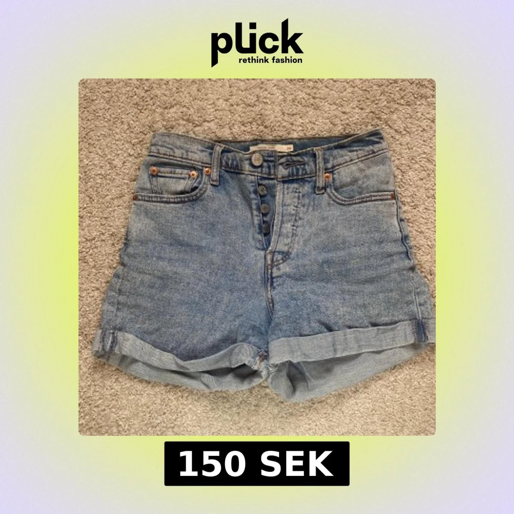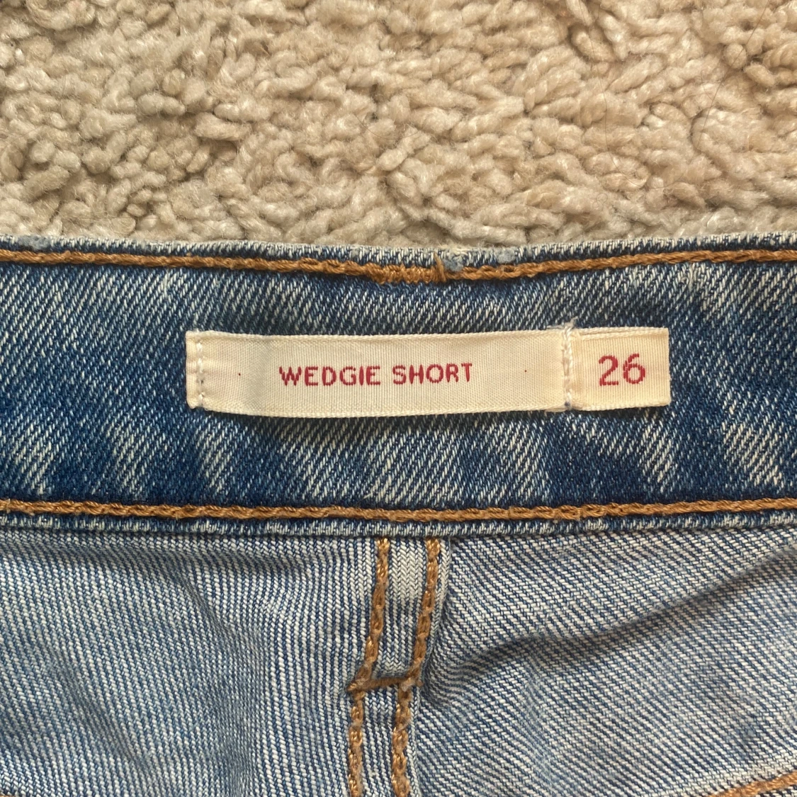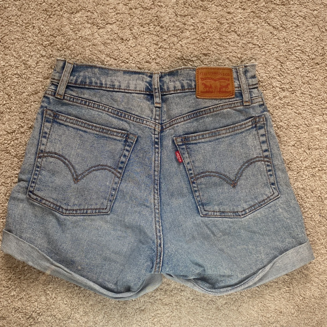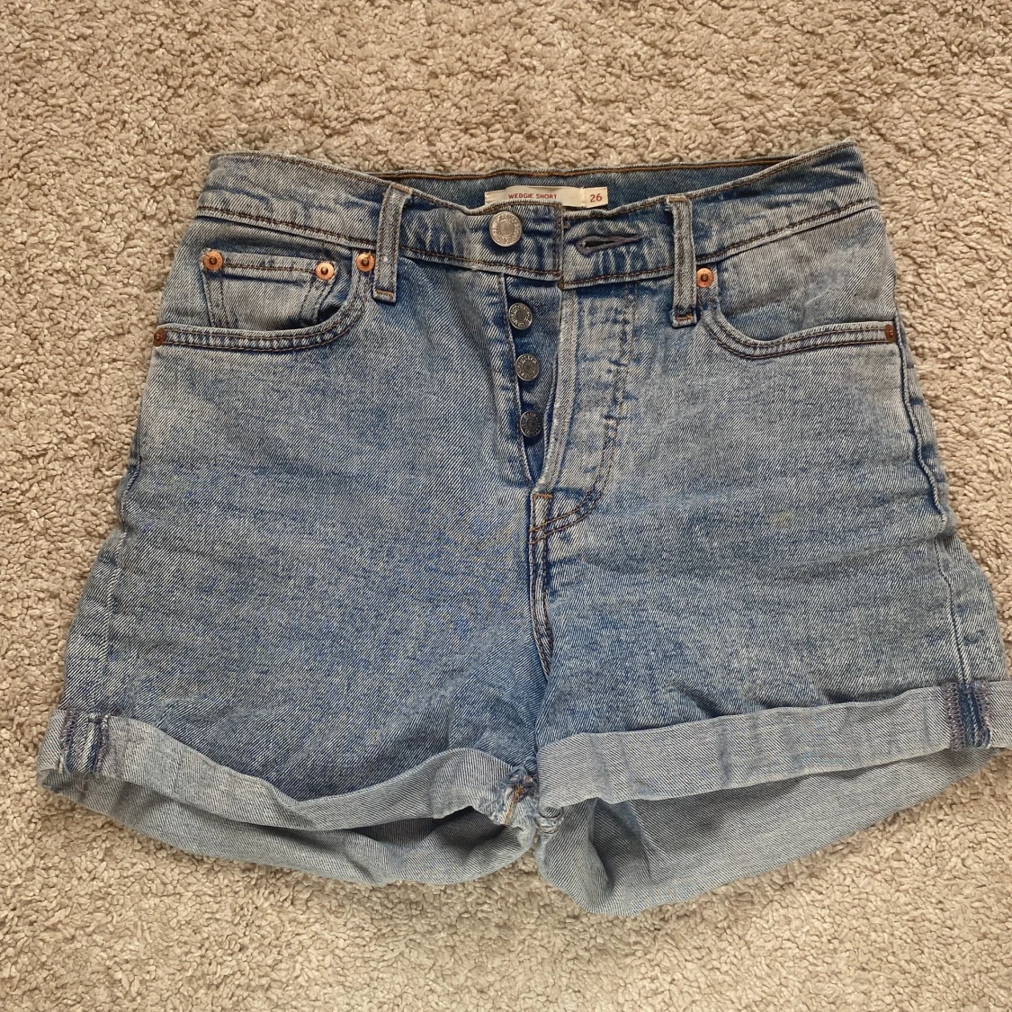 Säljer ett par snygga blå jeansshorts från Levi's med hög midja och knappgylf. Shortsen har klassiska femficksdetaljer och uppvikta benslut för en avslappnad look. Perfekta för sommardagar! 💙