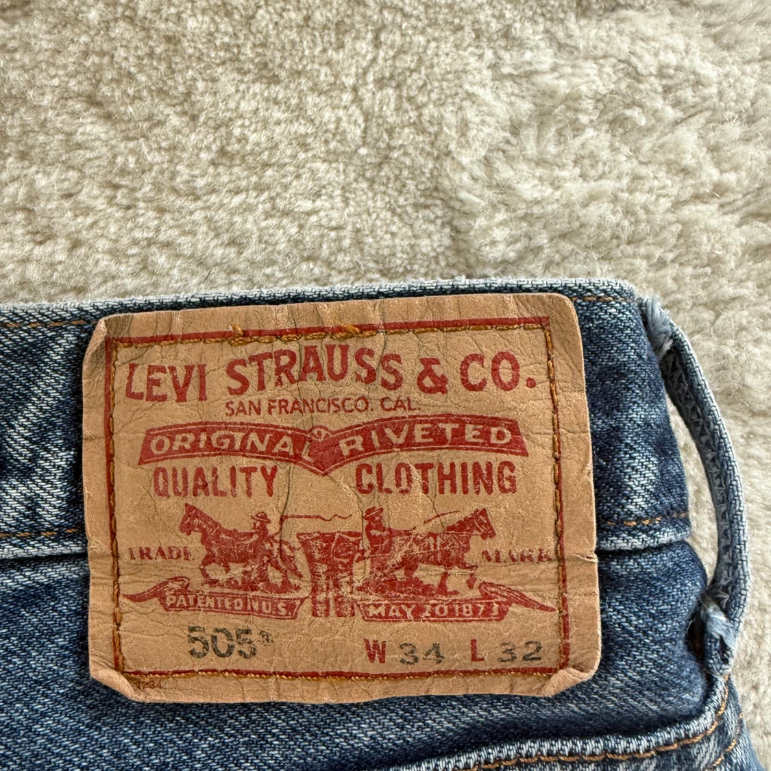 Klassiska blå jeansshorts från Levi's, modell 505 Regular Fit. Storlek W34 L32