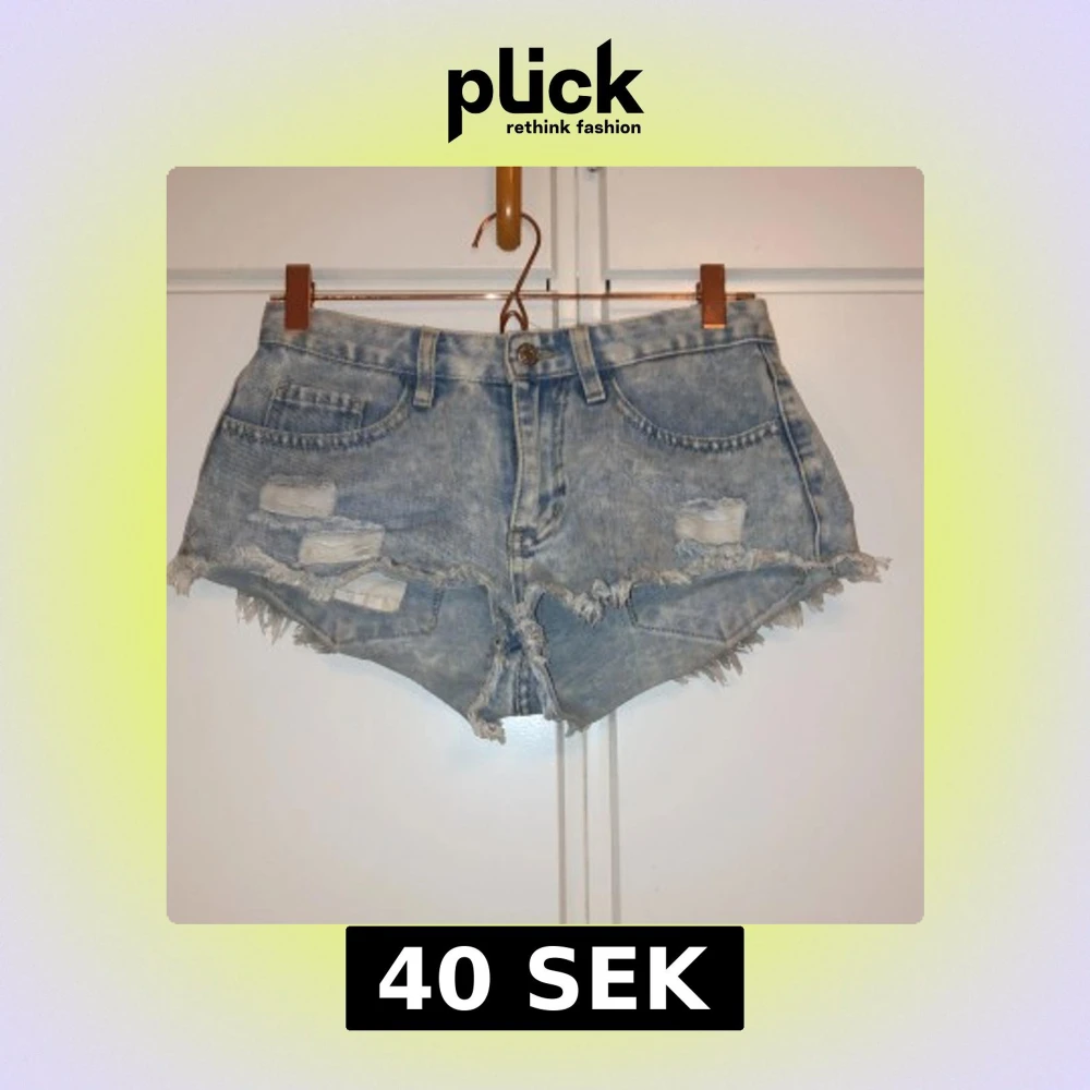 Säljer ett par ljusblå jeansshorts från SHEIN med slitna detaljer och fransig kant. Shortsen har låg midja och dragkedja med knapp. De ser mycket kortare ut än vad de egentligen är på! Använd flitigt men väl omhändertagna!!