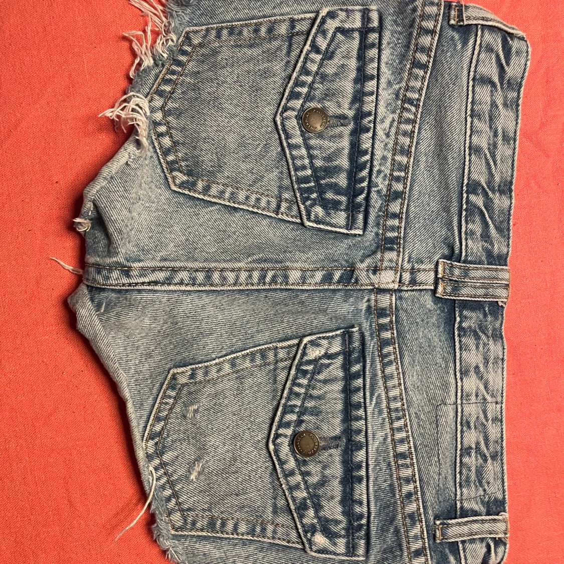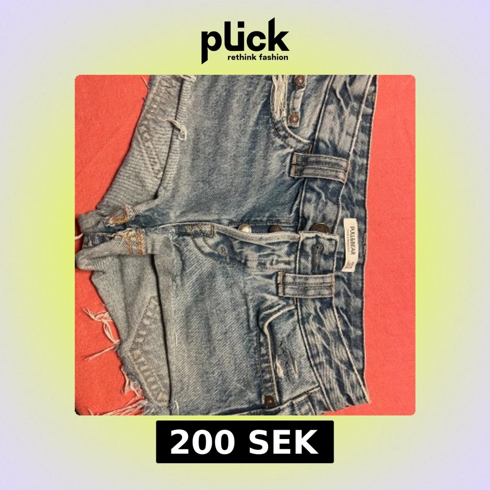 Snygga blå jeansshorts från Pull&Bear med fransiga kanter och knappar framtill.❤️