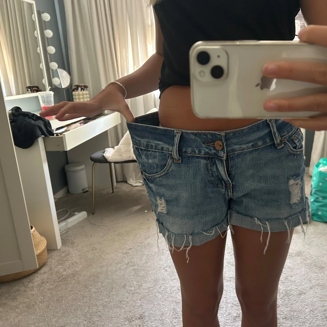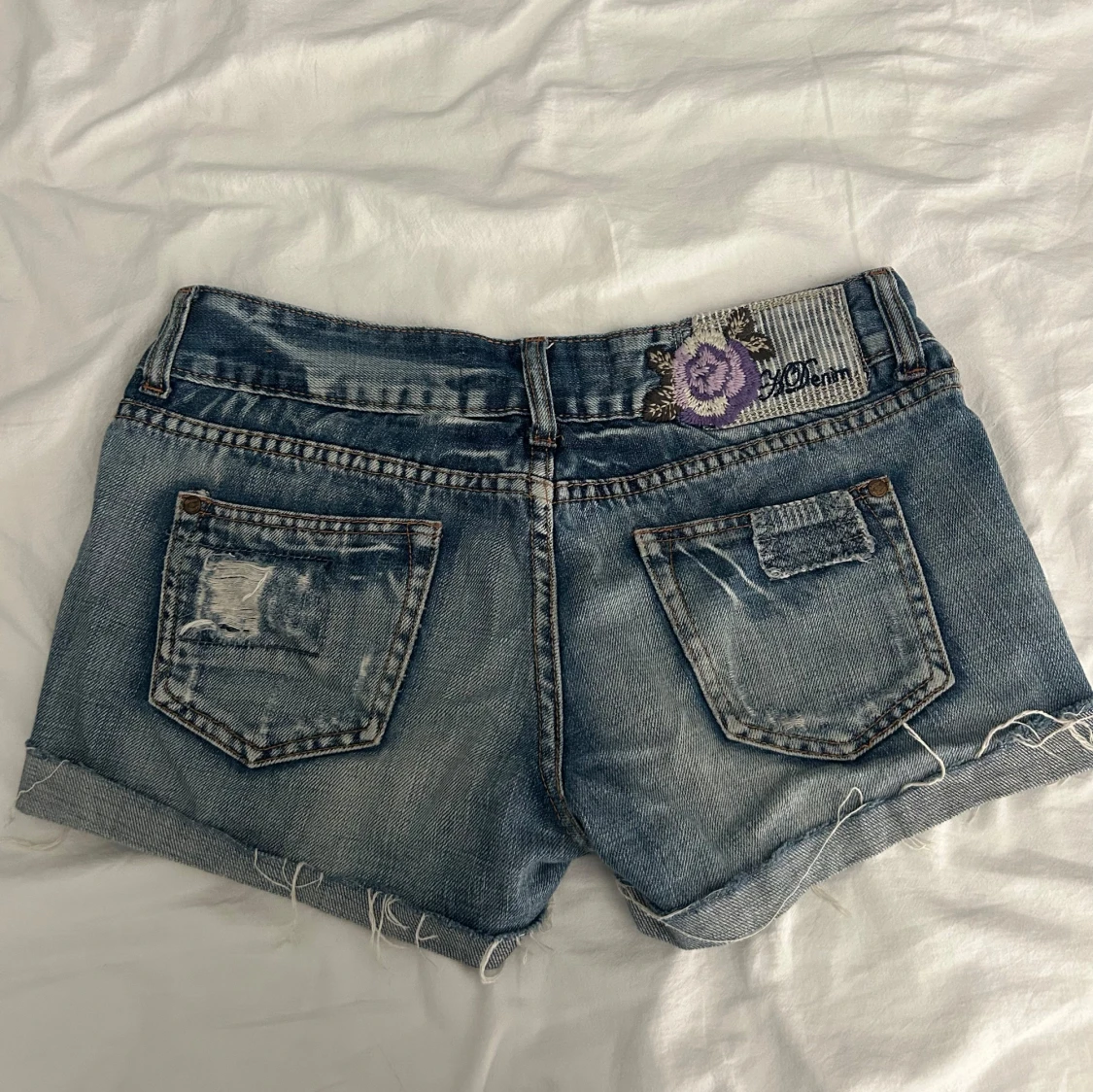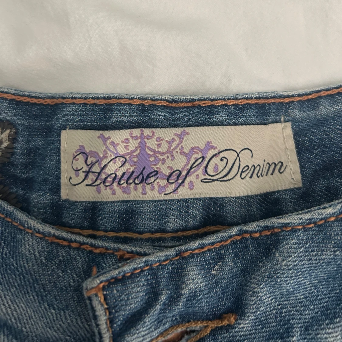 Snygga blå jeansshorts från House of Denim med slitna detaljer och fransig kant. Storlek står inte men dom är förtstora för mig som oftast har storlek 32 i shorts