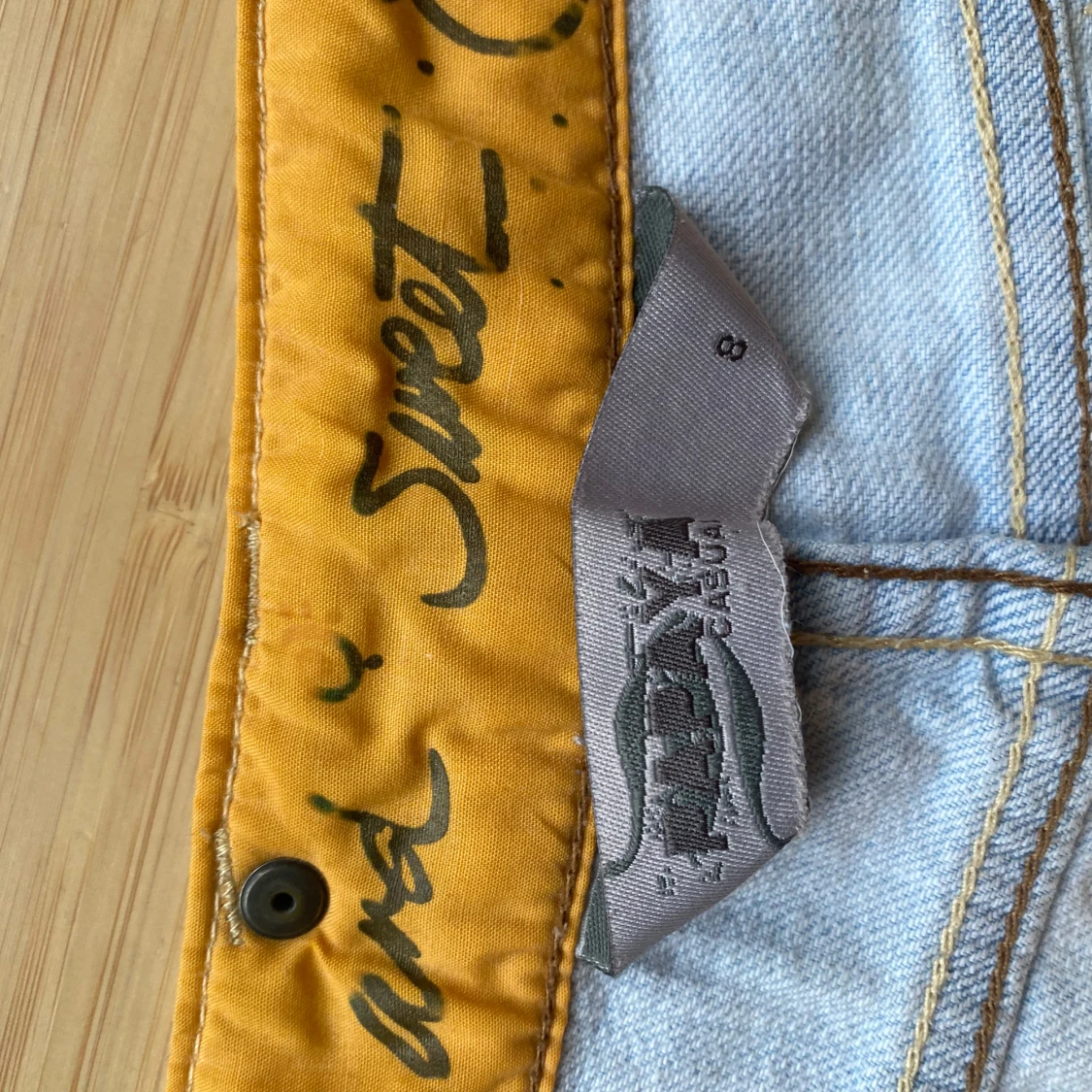 Superfina ljusblåa lågmidjade jeansshorts från papaya. Första bilden är lånad men det är samma modell och märke resten är mina egna. Storlek 8 vilket passar 38💕