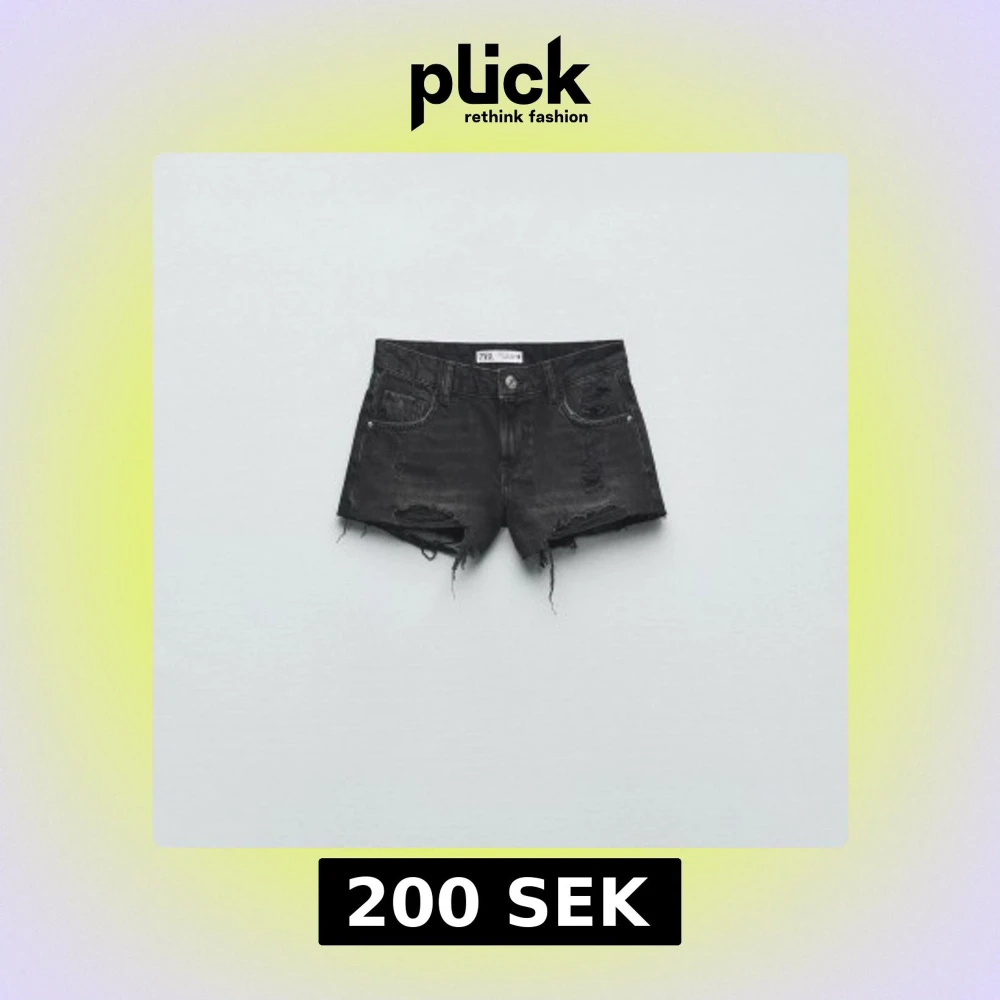Snygga svarta jeansshorts från Zara med slitna detaljer och fransig kant. Lågmidjade as feta shorts som inte säljs längre🔥 Skriv om frågor, säljer då de är för stora för mig! Pris går att diskuteras!!🩷🩷