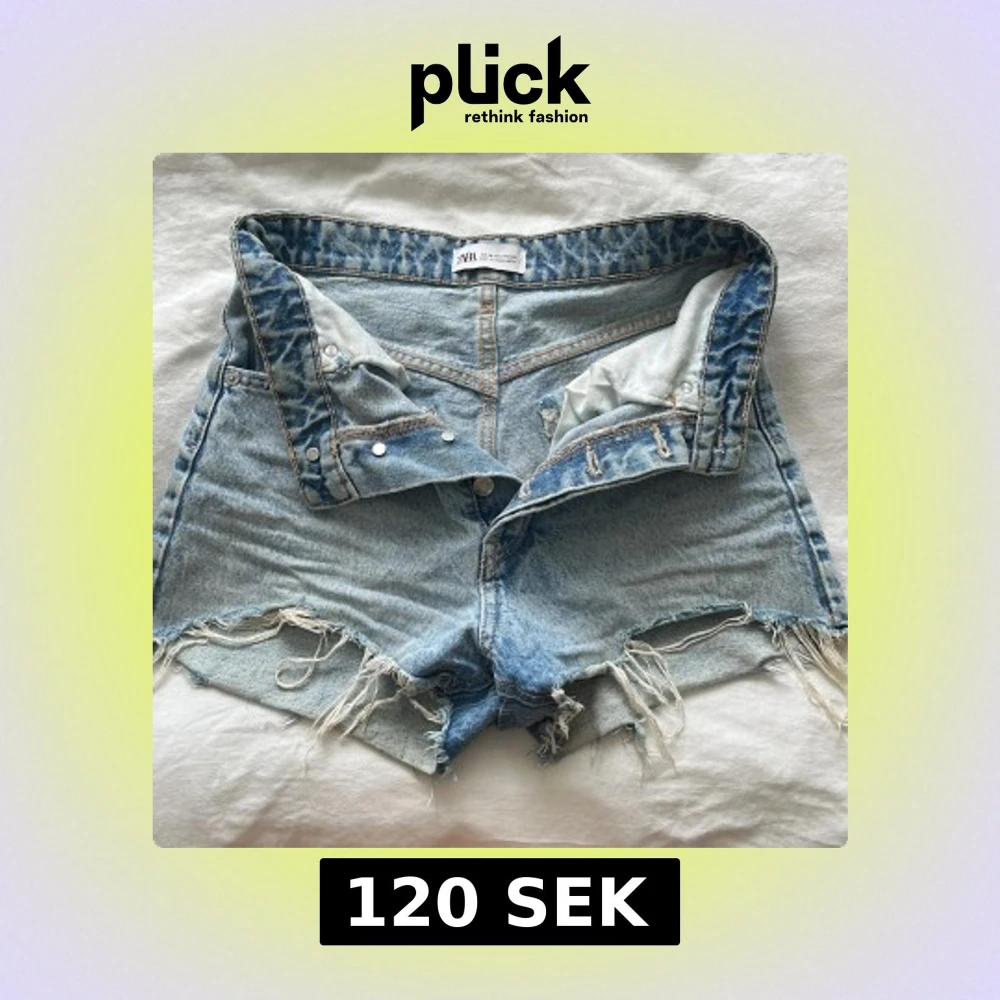 Snygga ljusblå jeansshorts från Zara, fransiga benslut. Klassisk femficksmodell med knappgylf och slitna detaljer. Perfekta till sommaren och lätta att matcha med allt.