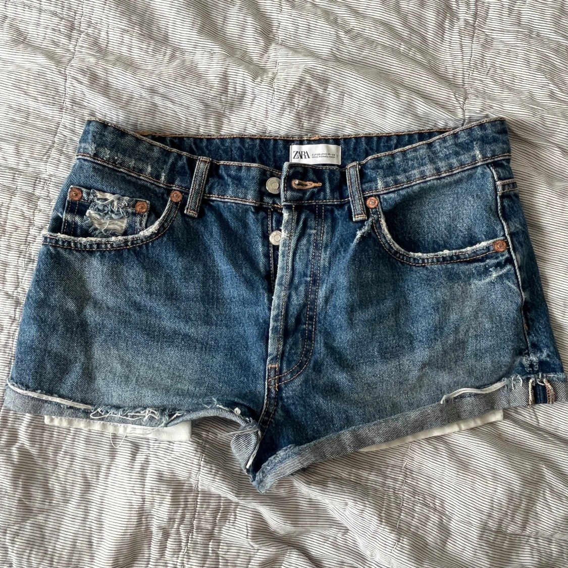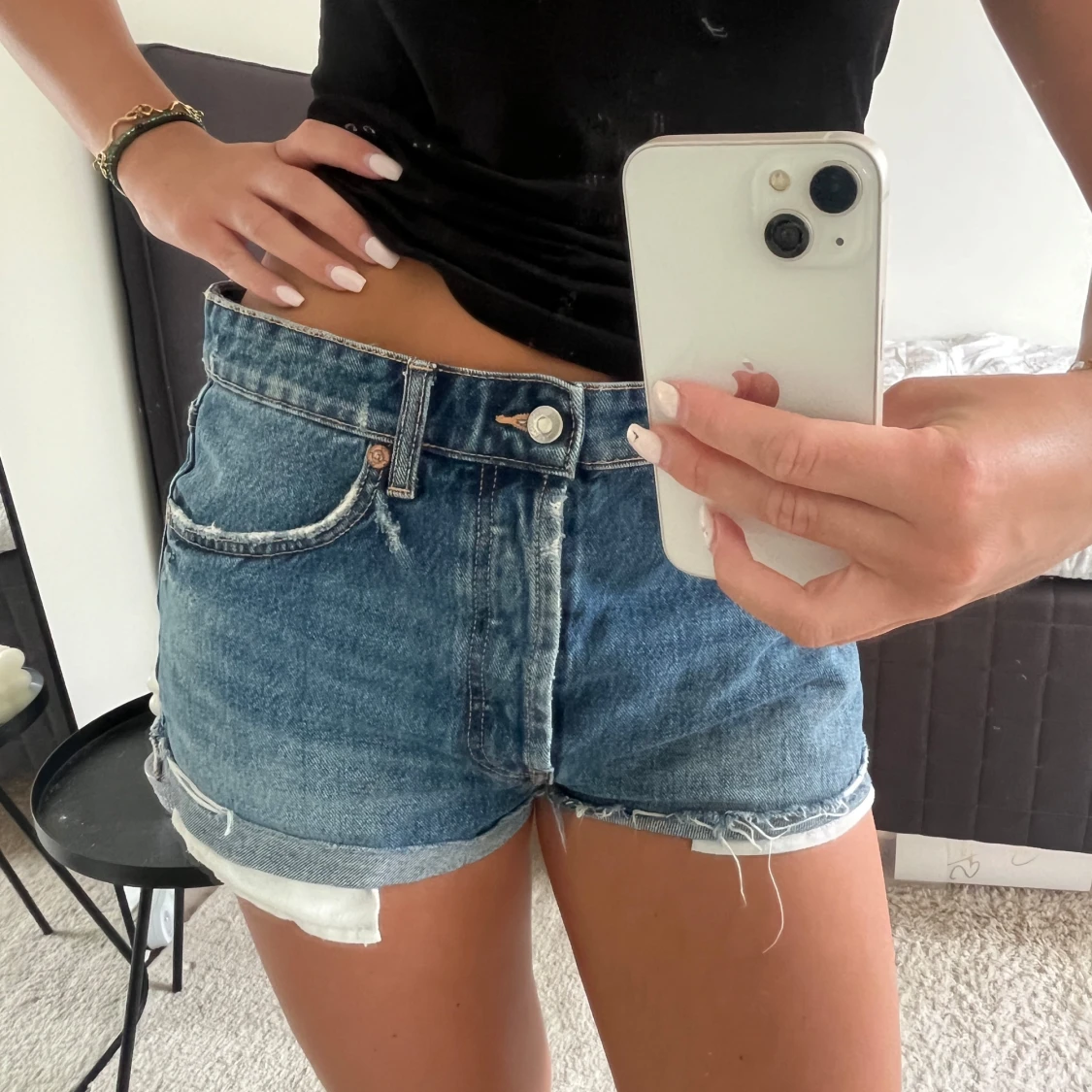 Säljer dessa snygga denim shorts från Zara med slitningar och knapp-gylf❤️Shortsen är inte använda och är i superbra skick. Kom gärna med prisförslag