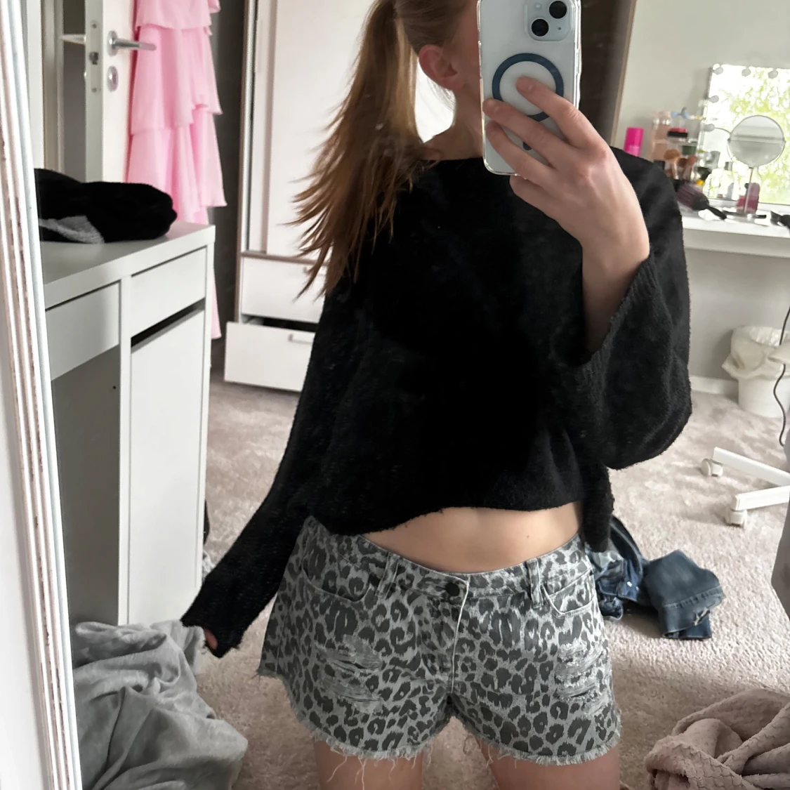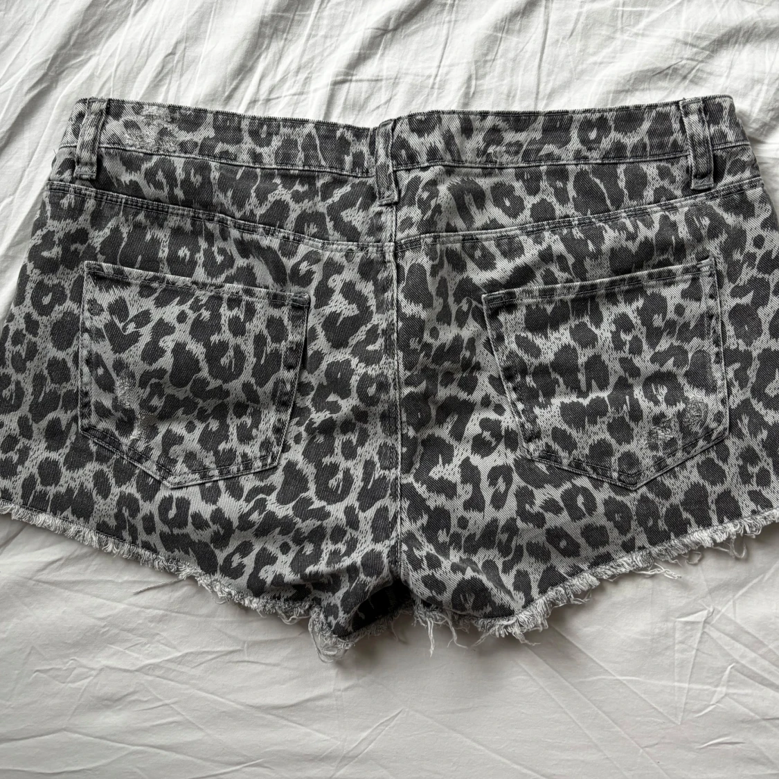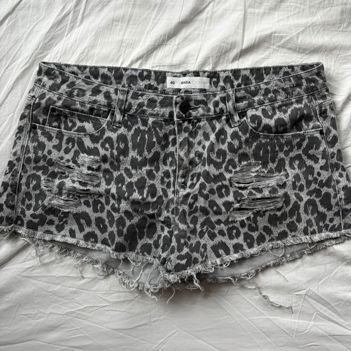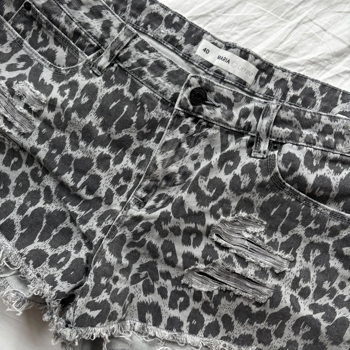 Säljer ett par grå jeansshorts från Zara med leopardmönster. Shortsen har slitna detaljer framtill, fransig nederkant och klassisk femficksmodell. I leoardmönster. Öppen för prisförslag. Skriv om ni har övriga frågor 💞