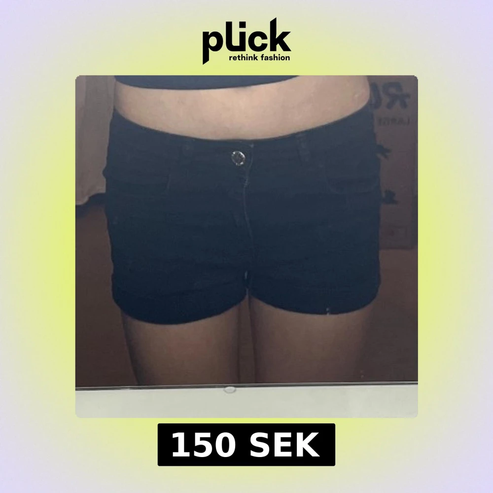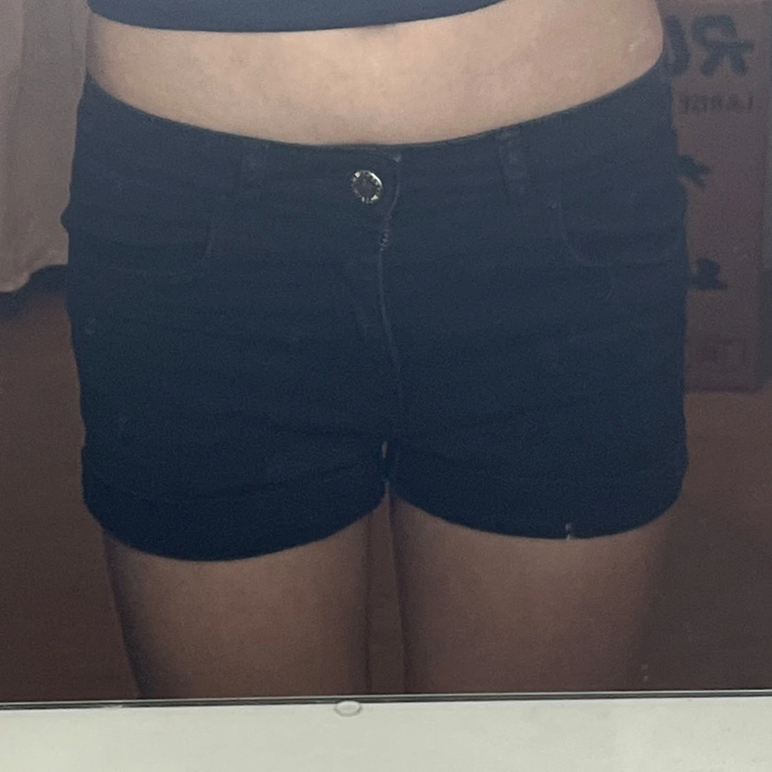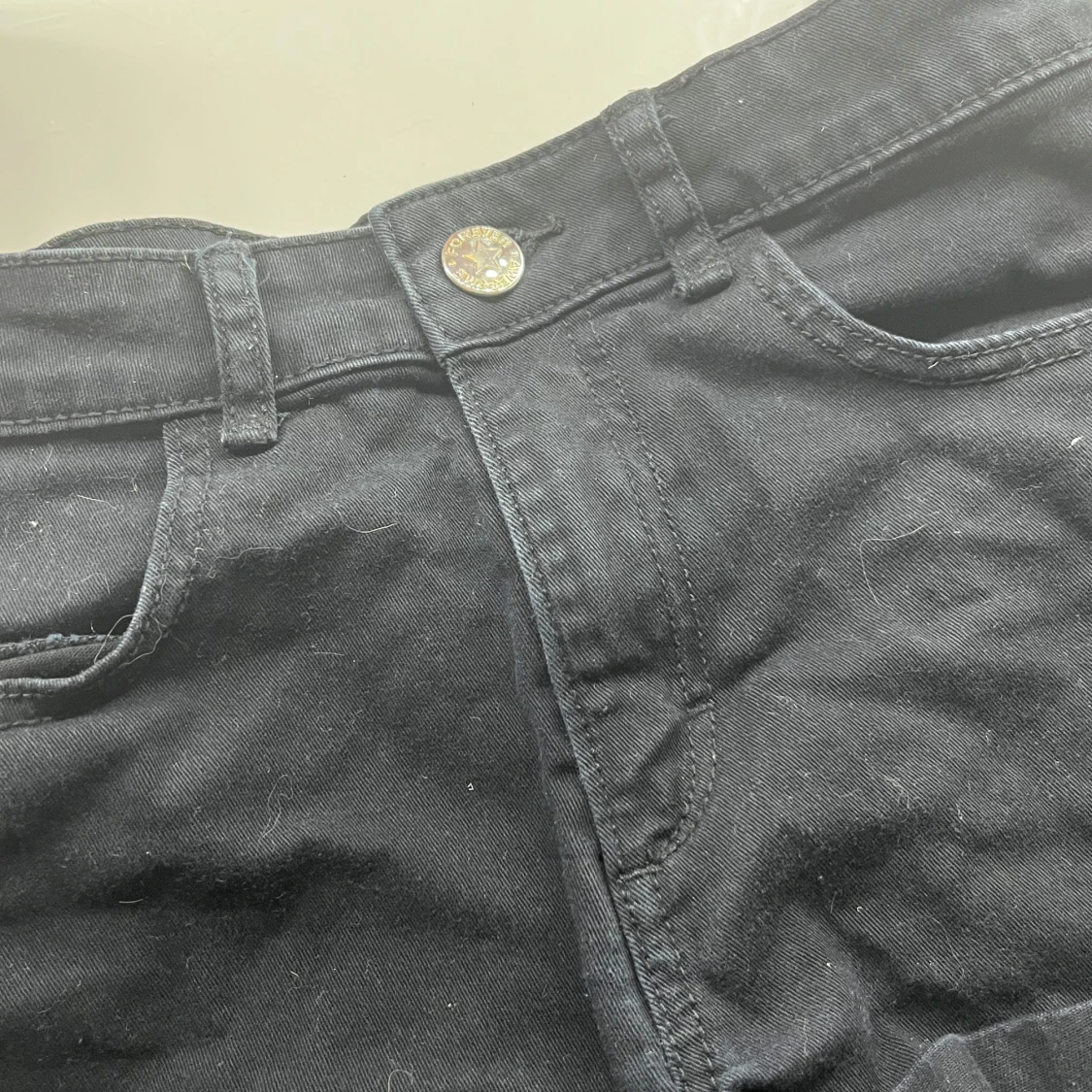 Snygga svarta jeansshorts med knapp och dragkedja framtill. Perfekta för en sommar stil. De har en klassisk design med fickor och hällor för bälte. Kommer från H&M och kostar 200 i butik. Använt 2 gånger. Så snygga och sköna!!