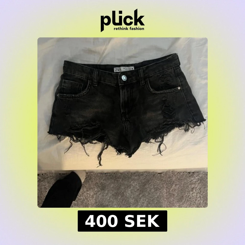 Svarta lågmidjade jeansshorts från Zara med råa fransade kanter och slitna detaljer. Passar till alla sommar toppar i perfekt skick