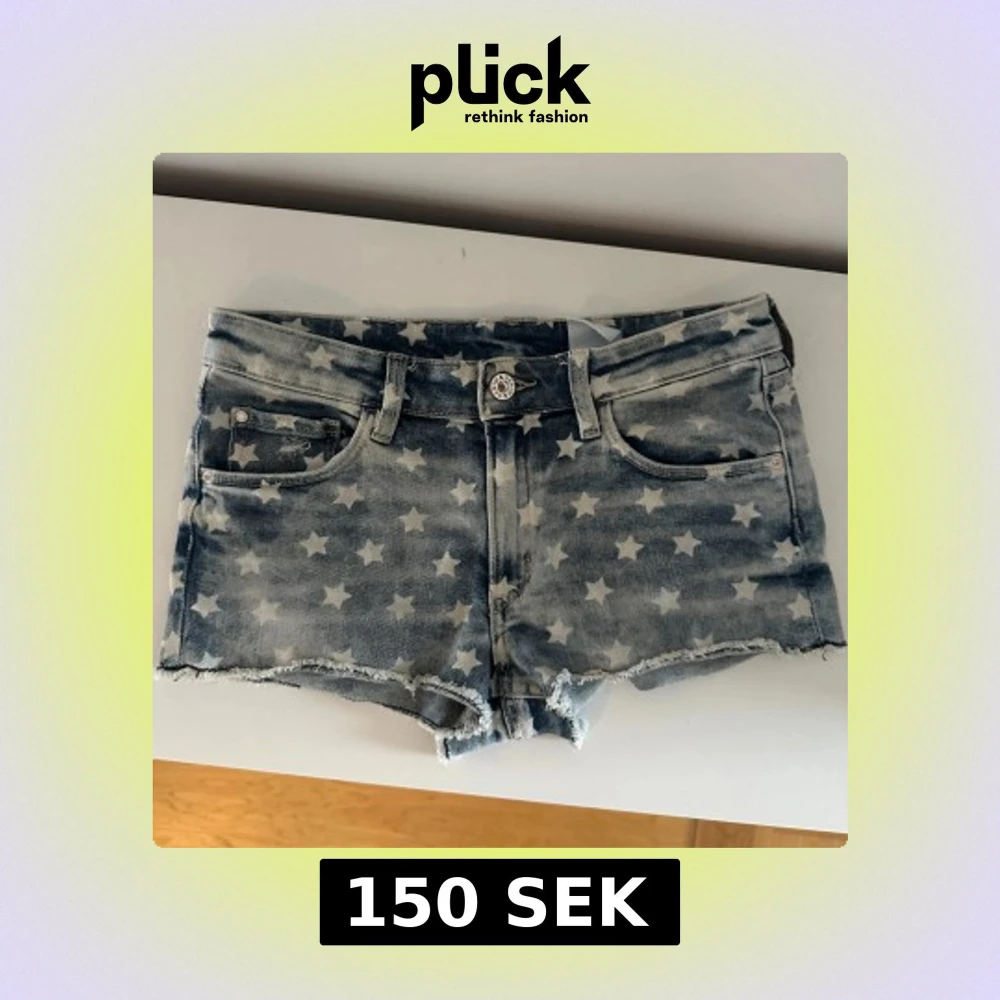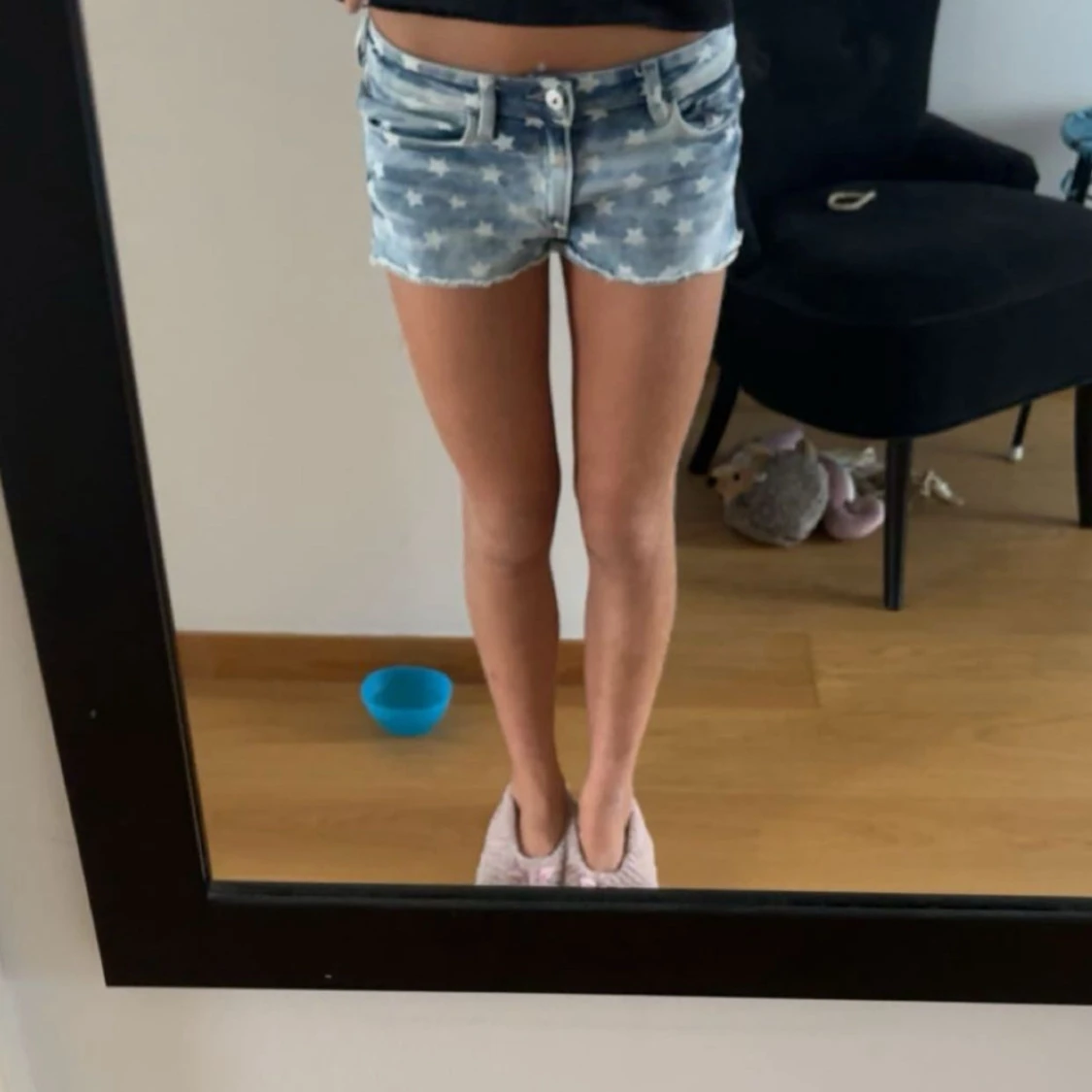 Blåa jeansshorts detaljerade med stjärnor. Kommer från HM men finns inte att köpa längre. Säljer pga att dem inte passar mig längre💕