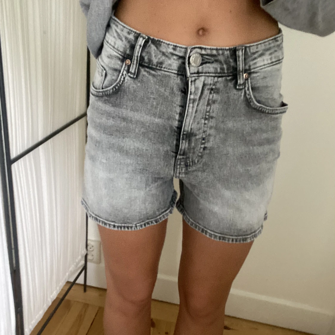 Gråa Shorts från H&M i storlek 36! Nyskick utan defekter☺️ Frakt på 60kr tillkommer🌸