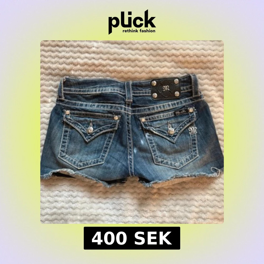 Säljer ett par blå jeansshorts från Miss Me med coola nitar och quiltad look framtill. Shortsen har råa kanter, snygga bakfickor med detaljer och silverfärgade knappar. Perfekta för dig som vill sticka ut i sommar!