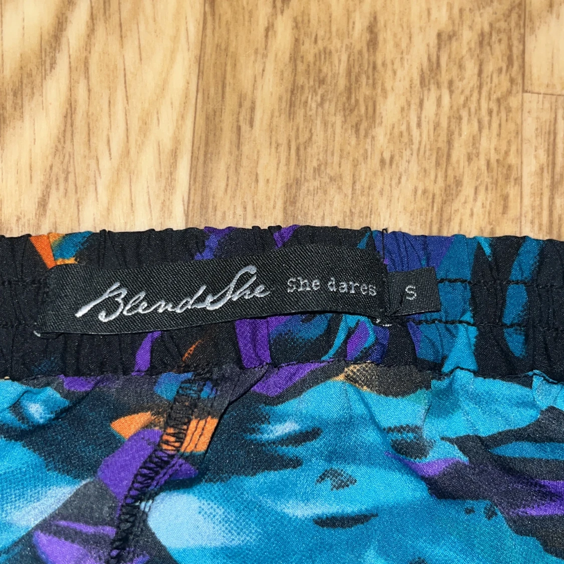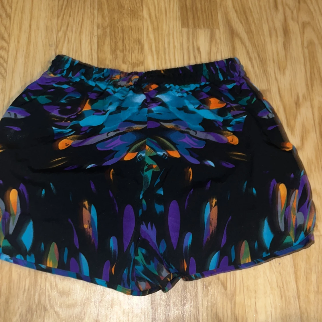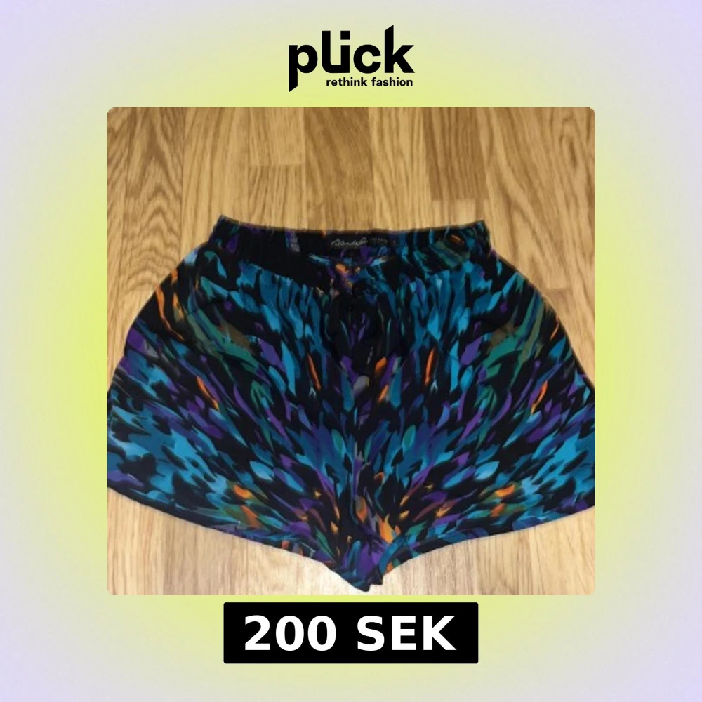 Snygga och färgglada shorts från BlendShe med ett unikt mönster i blått, lila och orange. Perfekta för en somrig look. De har en bekväm passform med elastisk midja och knytband framtill.