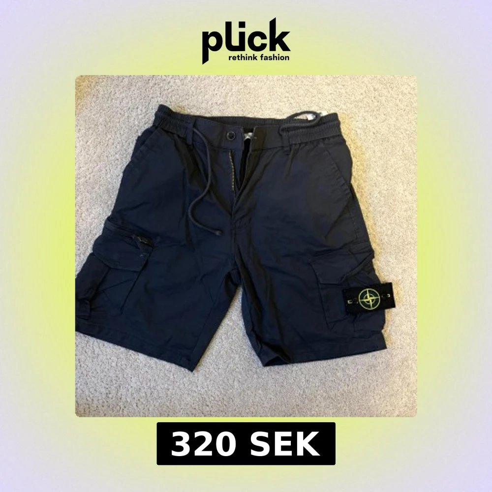 Blåa cargo shorts från Stone Island med ikonisk patch på benet. De har flera fickor, snörning i midjan och dragkedja fram. Materialet är 97% bomull och 3% spandex, vilket gör dem både bekväma och slitstarka. Perfekta för dig som gillar streetwear och funktionella detaljer. en ficka sönder