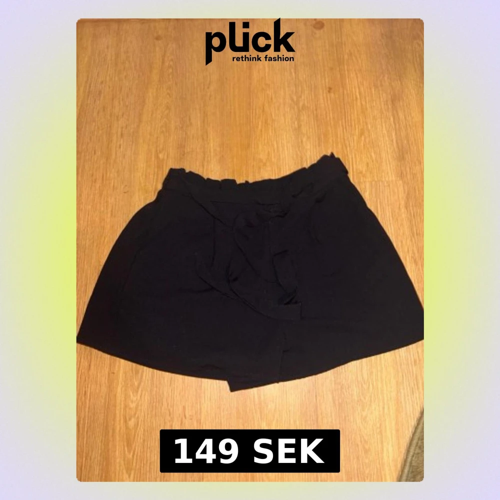 Snygga svarta shorts från Stradivarius med hög midja och knytband i midjan. De har en avslappnad passform och är perfekta för varma dagar. Tillverkade i ett mjukt och lätt material som känns skönt mot huden.