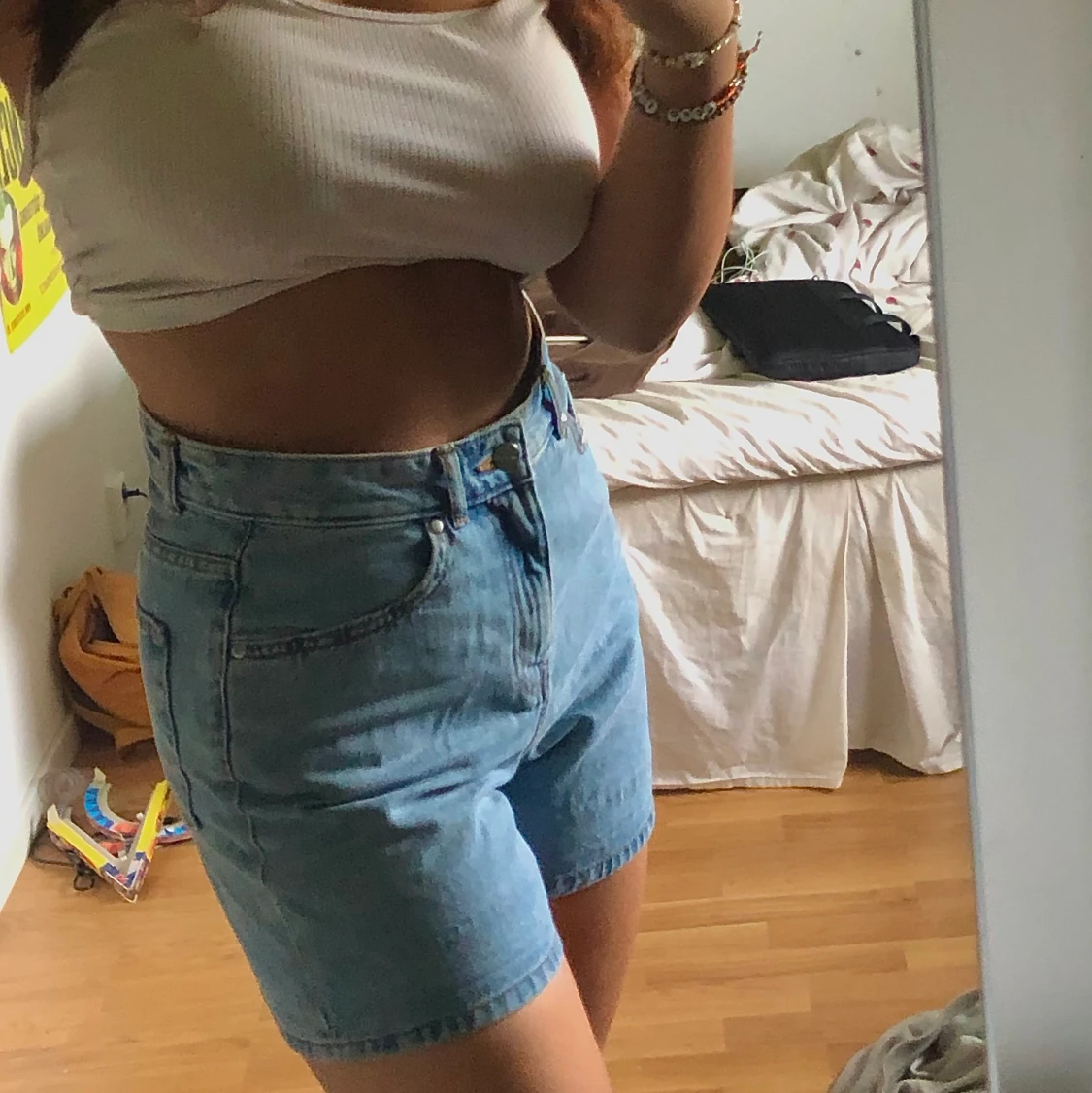 Fräscha Jeansshorts i stolek M! Inte använda mycket, kan ha dem både uppvikta och nervikta, nervikta blir mer som en biker-shorts-vibe vilket ja själv tycker är galet snyggt. Dem är lite för stora för mig runt midjan. Skriv om du har någon fråga eller vill se fler bilder <3