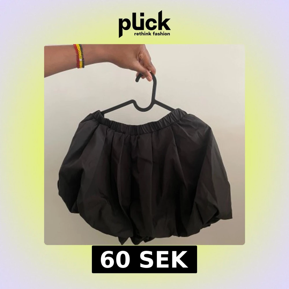 Säljer en svart ballongkjol med elastisk midja. Kjolen har en unik form som ger en voluminös och trendig look. Perfekt för att skapa en statement outfit.